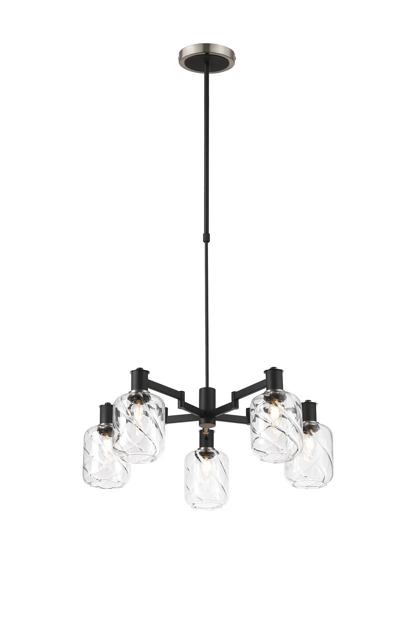 Adamson Swing Arm Telescopic Pendant 5 x E14 Satin Nickel/Satin Black/Clear Twisted Cylinder Glass