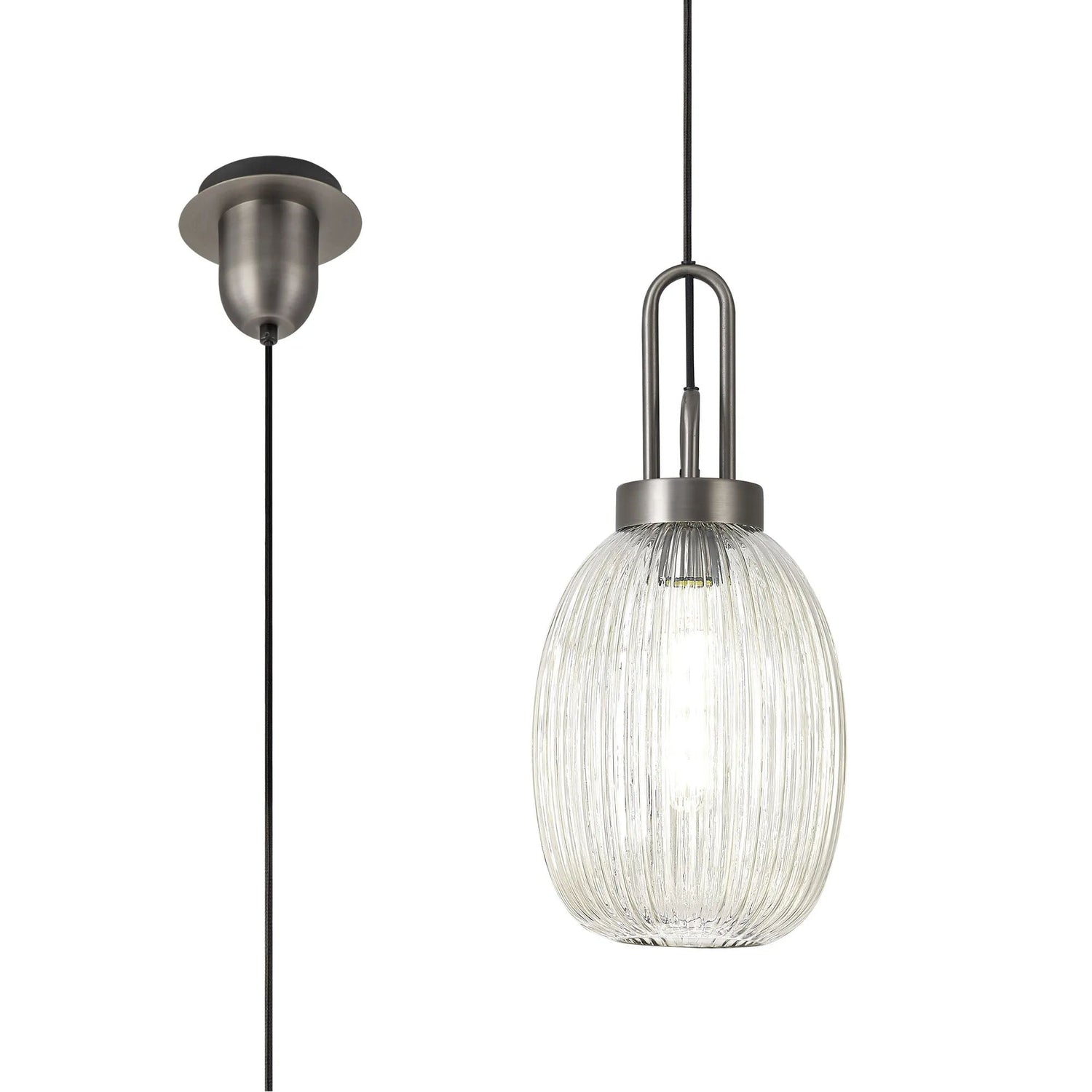 Allardyce 1 Light Pendant E27 20cm Almond Ribbed Glass, Champagne Antique Silver/Black
