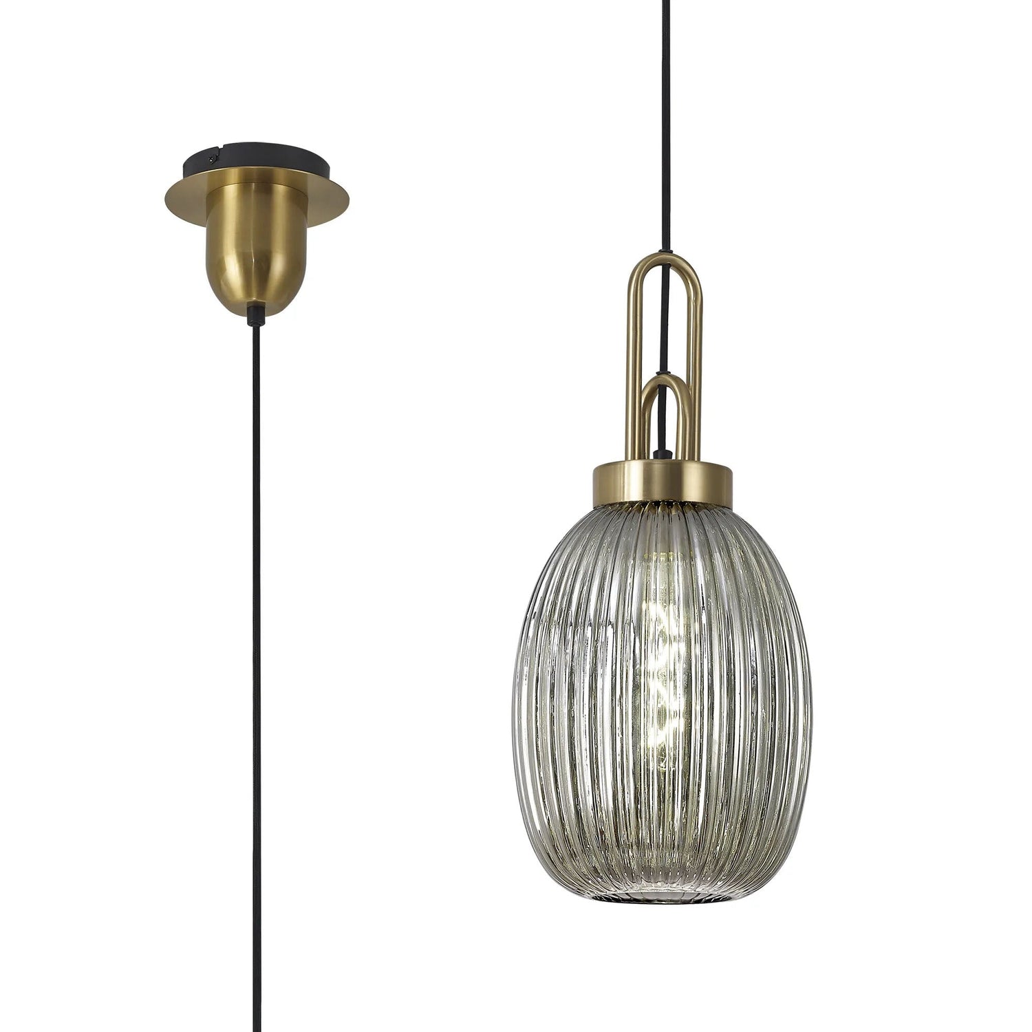 Allardyce 1 Light Pendant E27 With 20cm Almond Ribbed Glass, Smoked Brass Gold/Matt Black