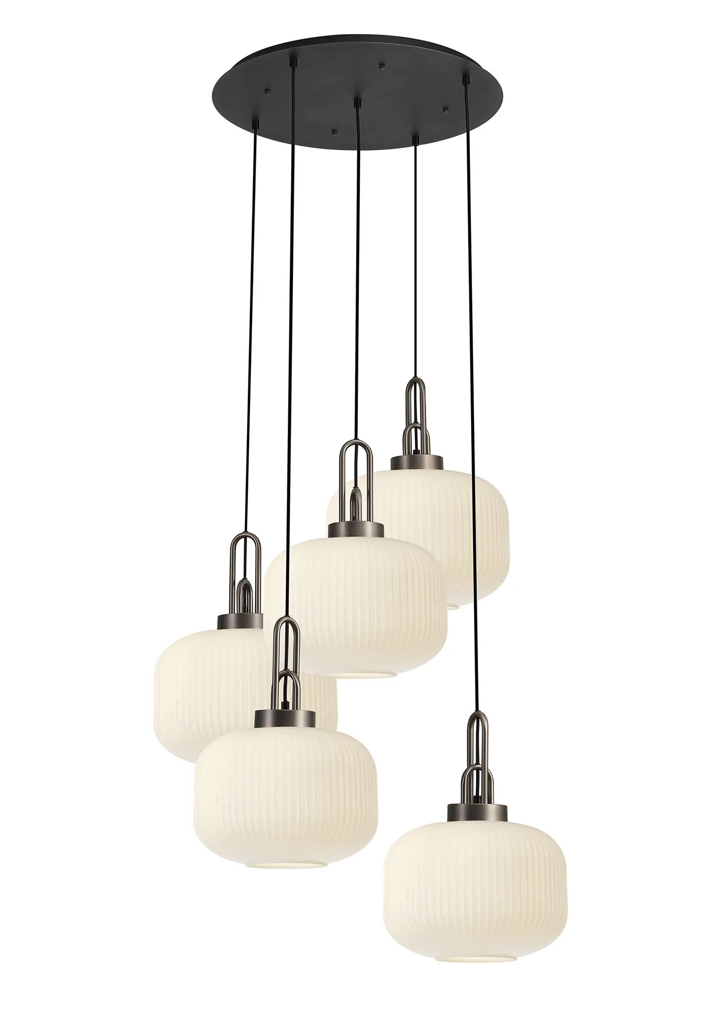 Allardyce 2.5m Round Pendant, 5 x E27, Antique Silver/Matt Black With 30cm Pumpkin Shaped Ribbed Opal Glass