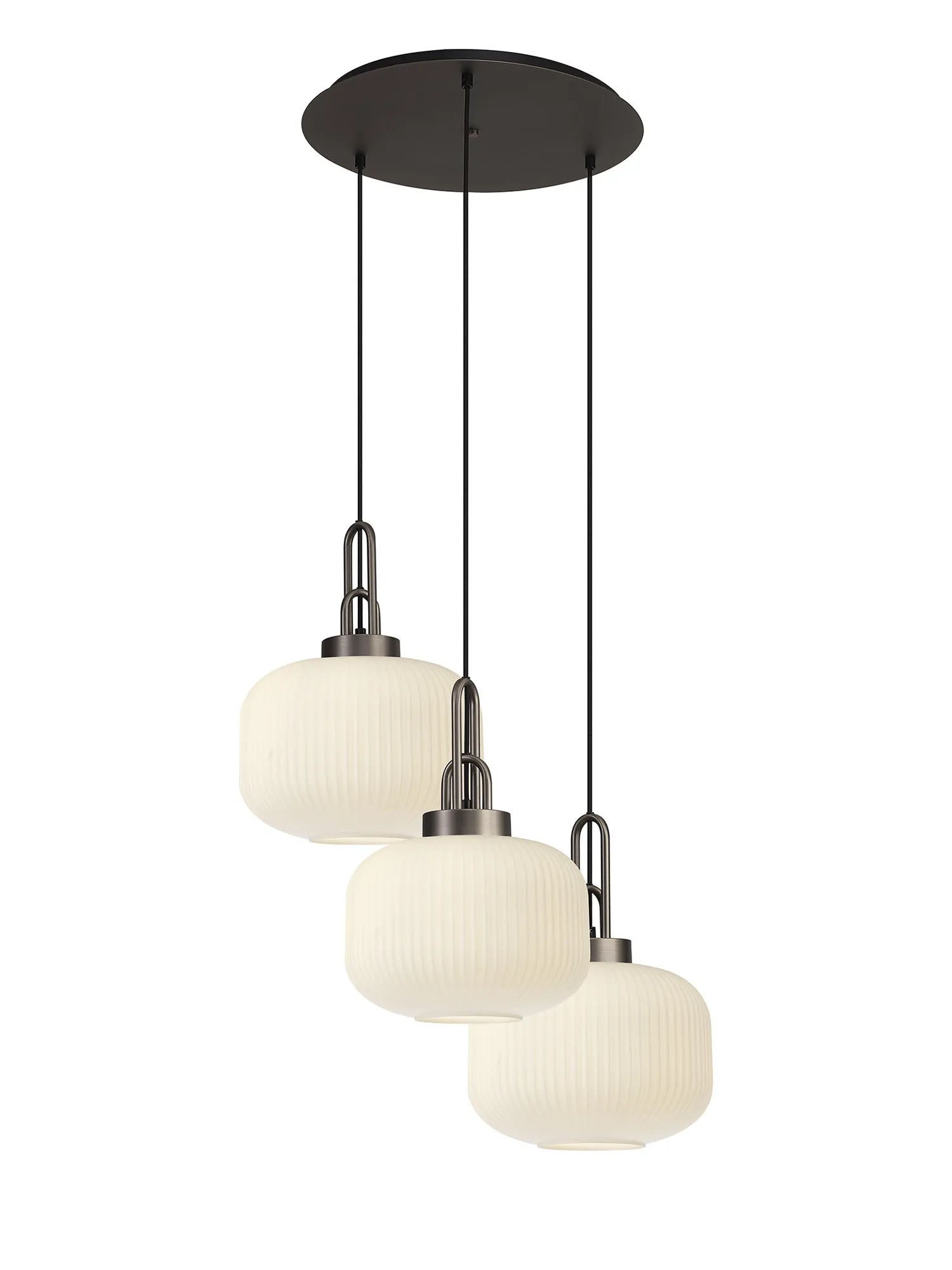 Allardyce 2m Round Pendant, 3 x E27, Antique Silver/Matt Black With 30cm Pumpkin Shaped Ribbed Opal Glass
