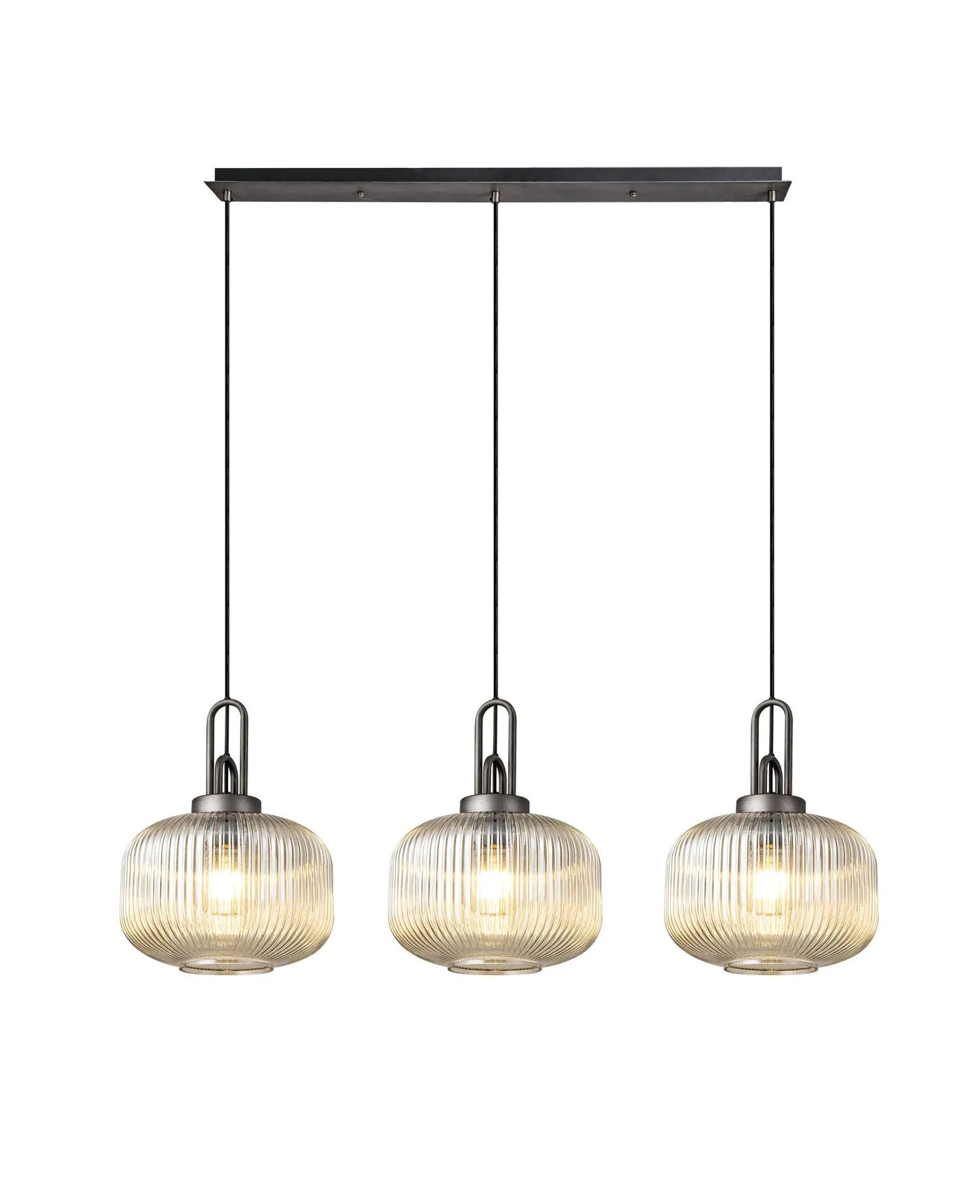 Allardyce Linear 3 Light Pendant E27, Aged Pewter/Matt Black With 30cm Pumpkin Shaped Ribbed Champagne Glass
