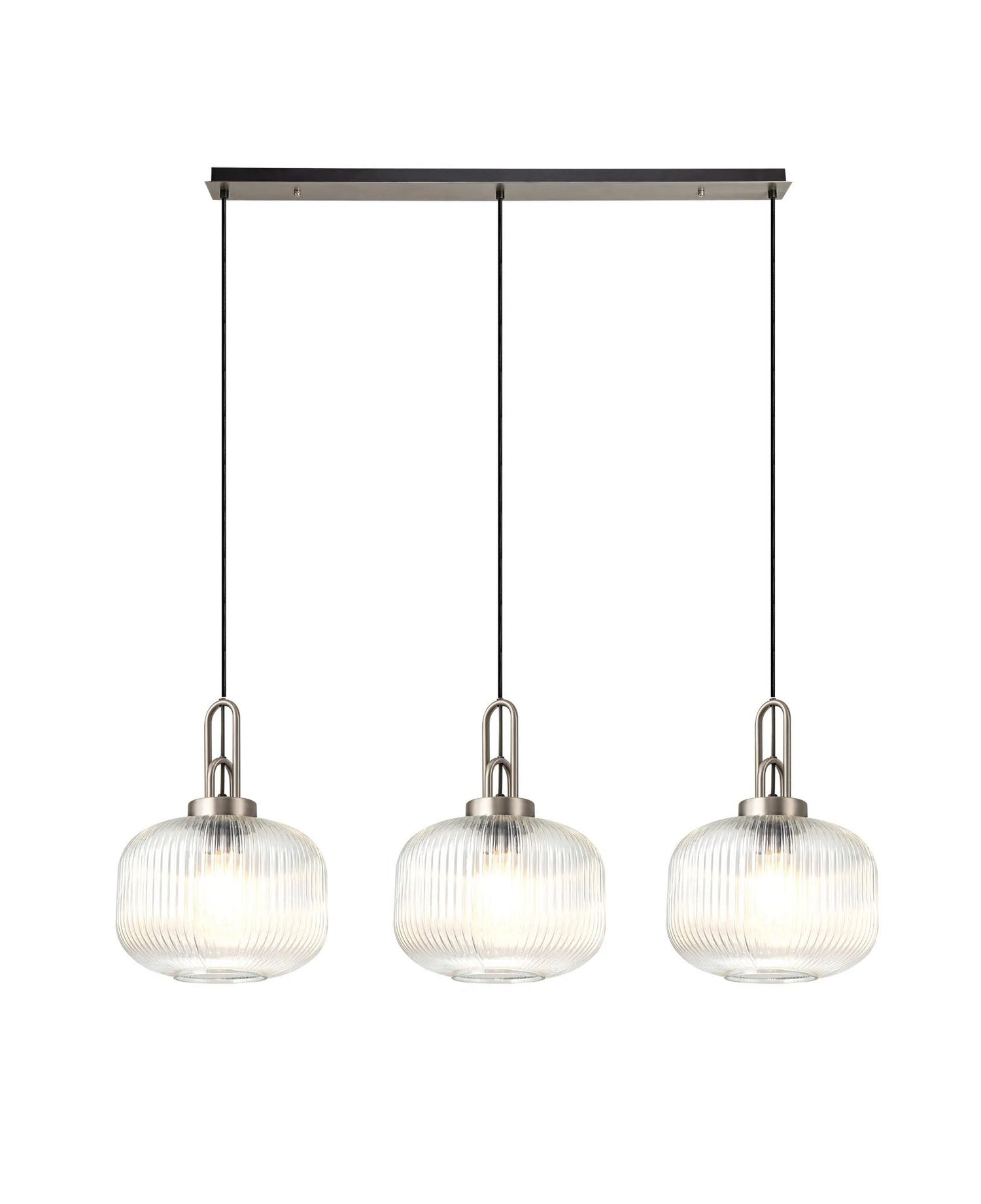 Allardyce Linear 3 Light Pendant E27, Antique Silver/Matt Black With 30cm Pumpkin Shaped Ribbed Clear Glass