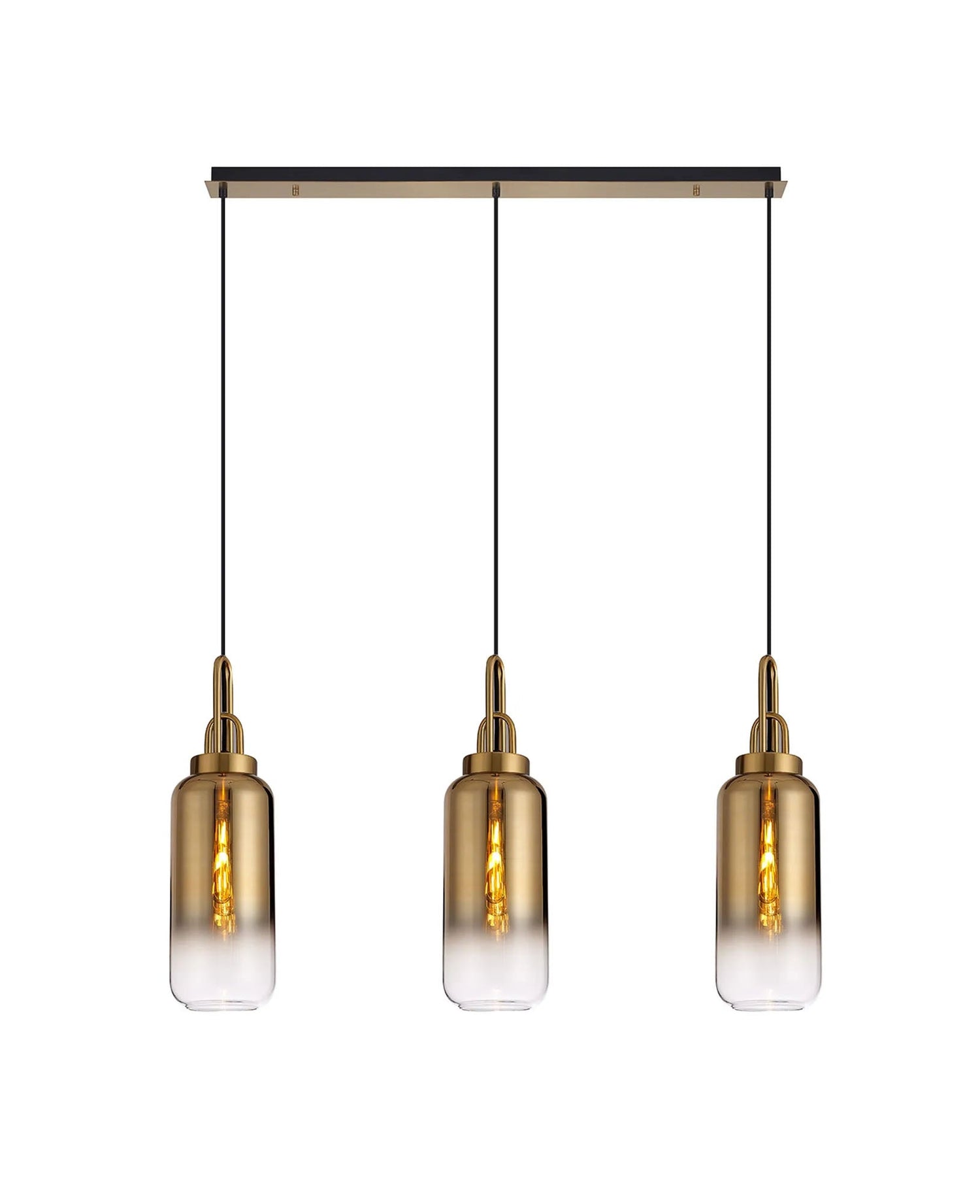 Allardyce Linear 3 Light Pendant E27 With 16cm Cylinder Glass, Brass Gold/Clear Brass Gold/Matt Black
