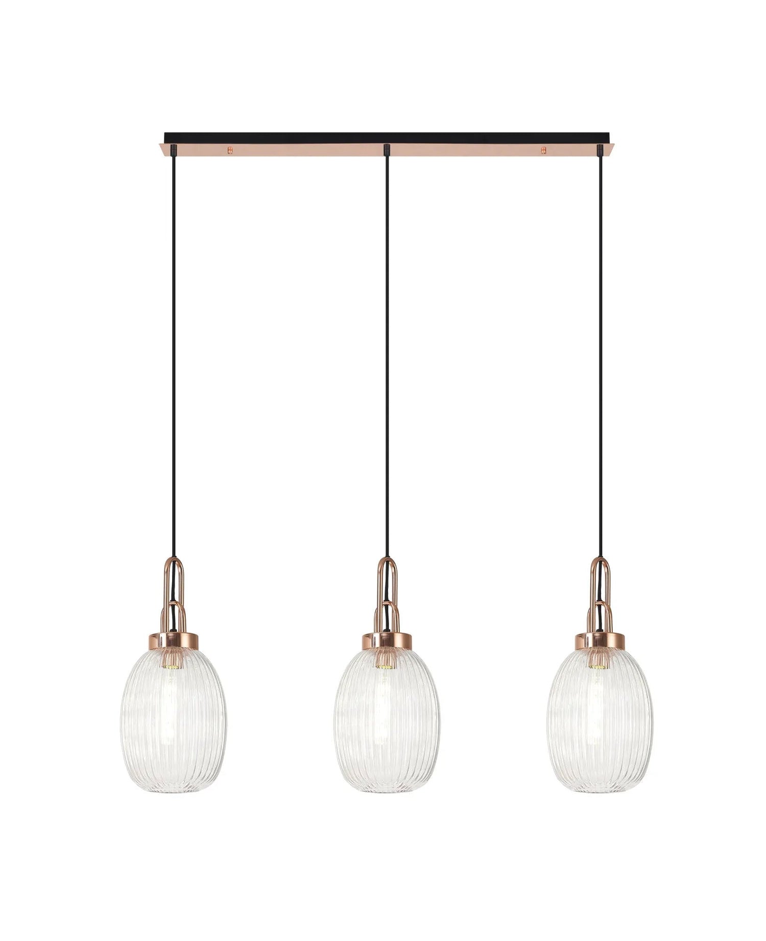Allardyce Linear 3 Light Pendant E27 With 20cm Almond Ribbed Glass, Clear Copper/Matt Black