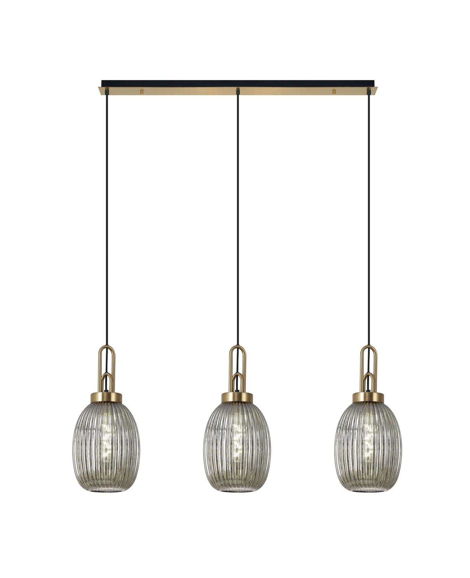 Allardyce Linear 3 Light Pendant E27 With 20cm Almond Ribbed Glass, Smoked Brass Gold/Matt Black