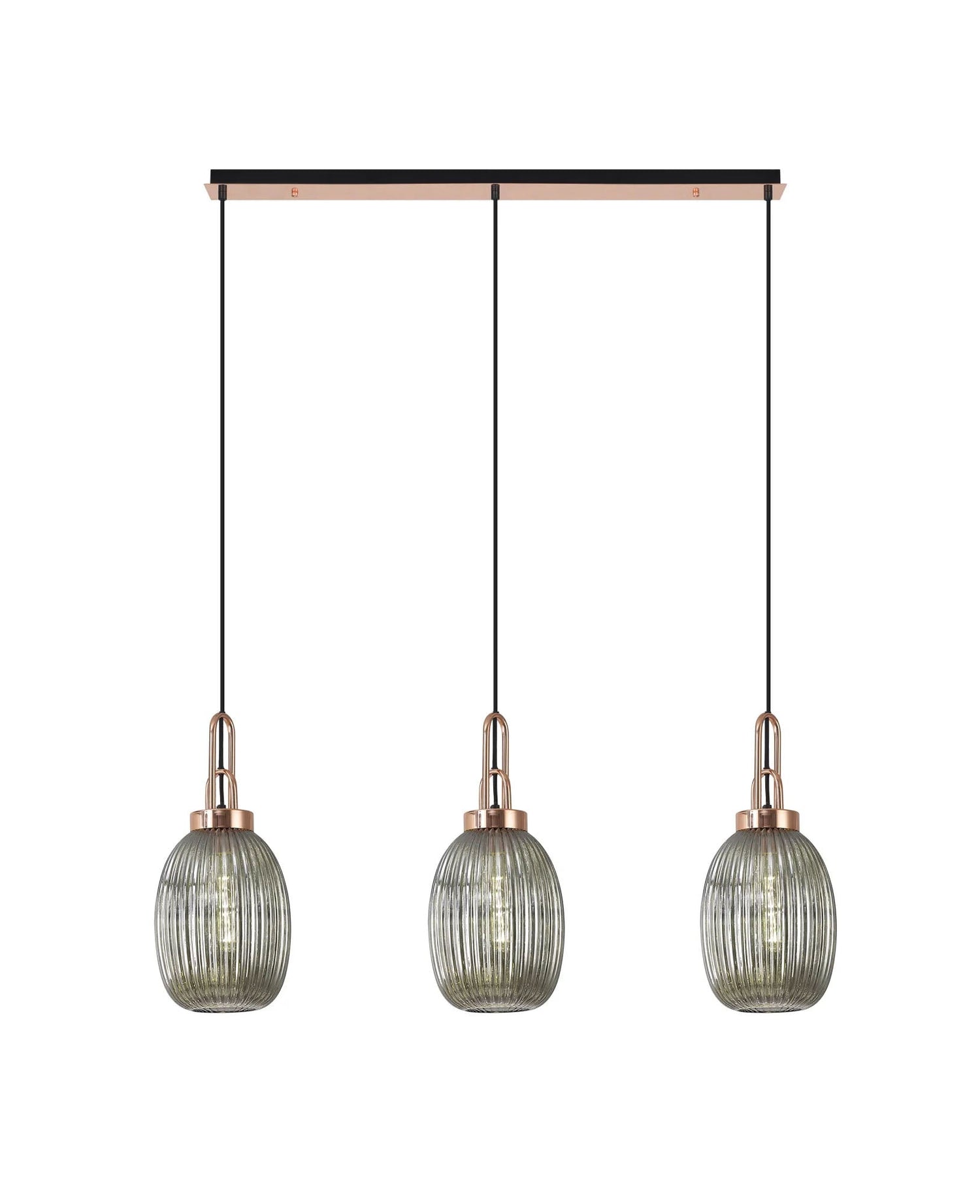 Allardyce Linear 3 Light Pendant E27 With 20cm Almond Ribbed Glass, Smoked Copper/Matt Black