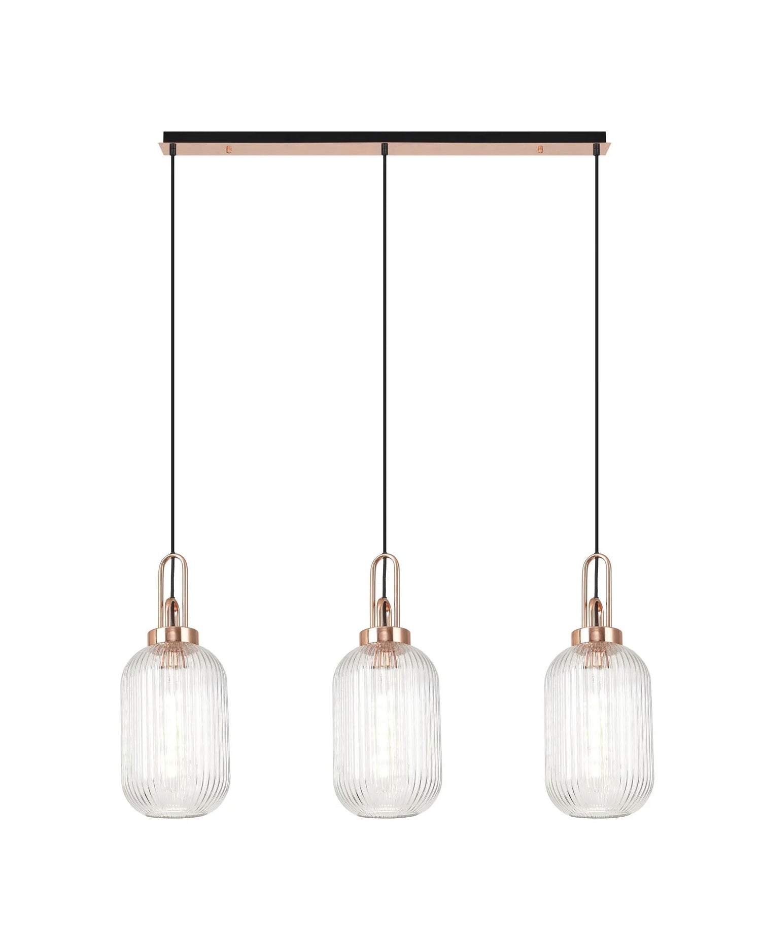 Allardyce Linear 3 Light Pendant E27 With 20cm Tubular Ribbed Glass, Clear Copper/Matt Black