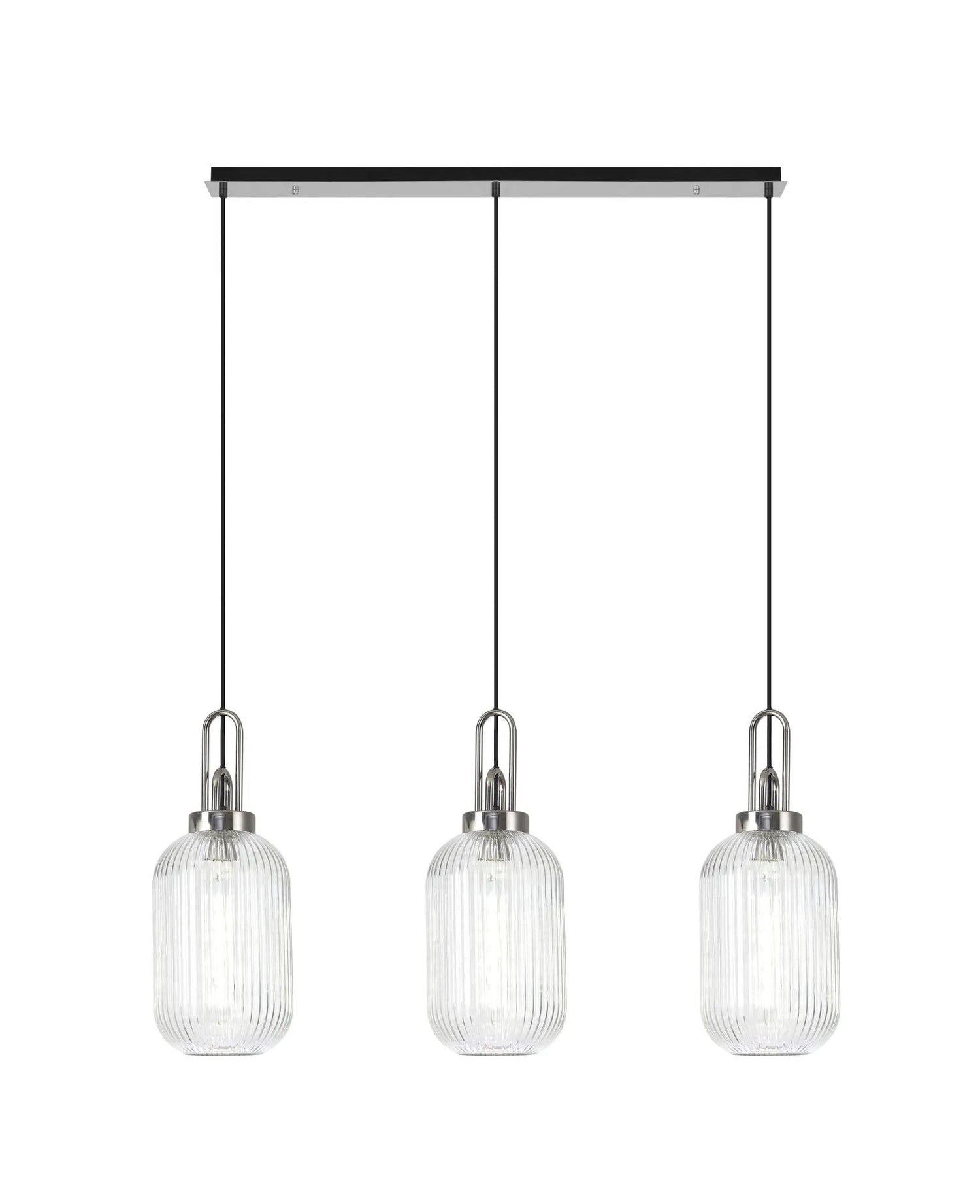 Allardyce Linear 3 Light Pendant E27 With 20cm Tubular Ribbed Glass, Clear Polished Nickel/Matt Black