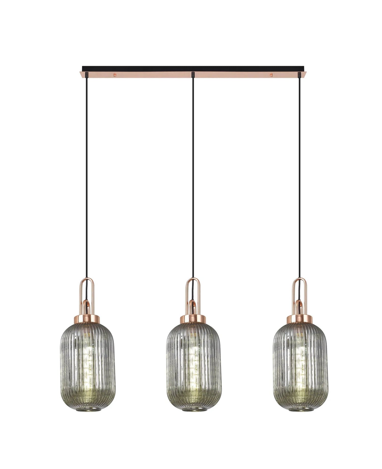 Allardyce Linear 3 Light Pendant E27 With 20cm Tubular Ribbed Glass, Smoked Copper/Matt Black