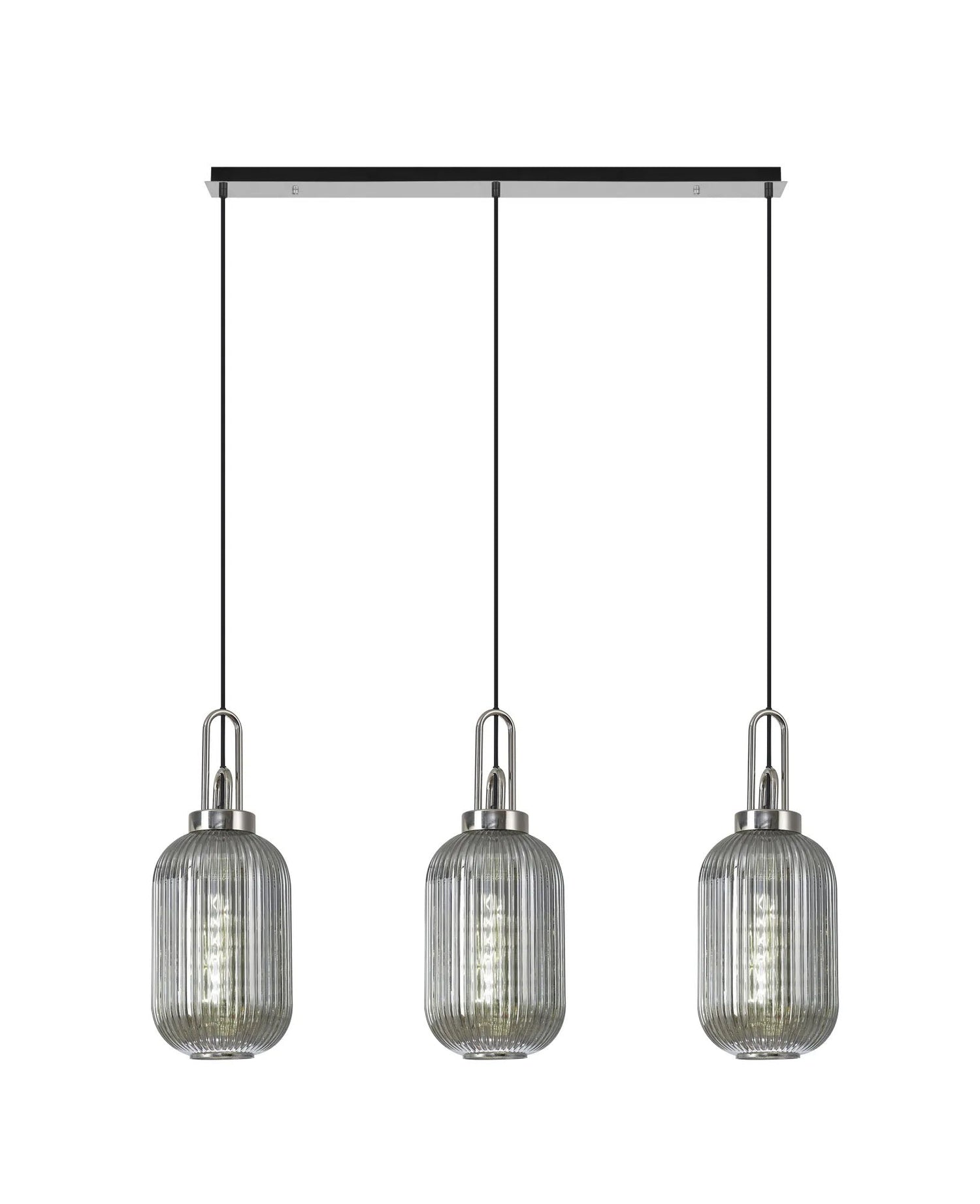 Allardyce Linear 3 Light Pendant E27 With 20cm Tubular Ribbed Glass, Smoked Polished Nickel/Matt Black