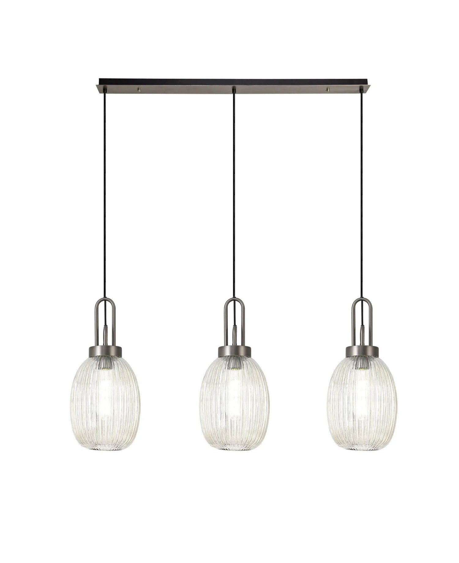 Allardyce Linear 3 Light Pendant With 20cm Almond Ribbed Glass, Antique Silver/Matt Black Champagne