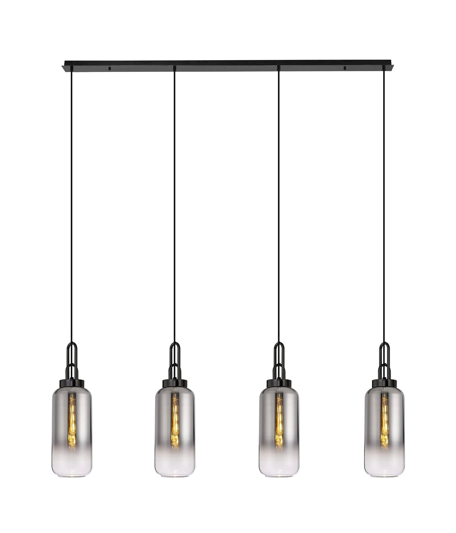 Allardyce Linear 4 Light Pendant E27 With 16cm Cylinder Glass, Smoked/Clear Black Chrome/Matt Black