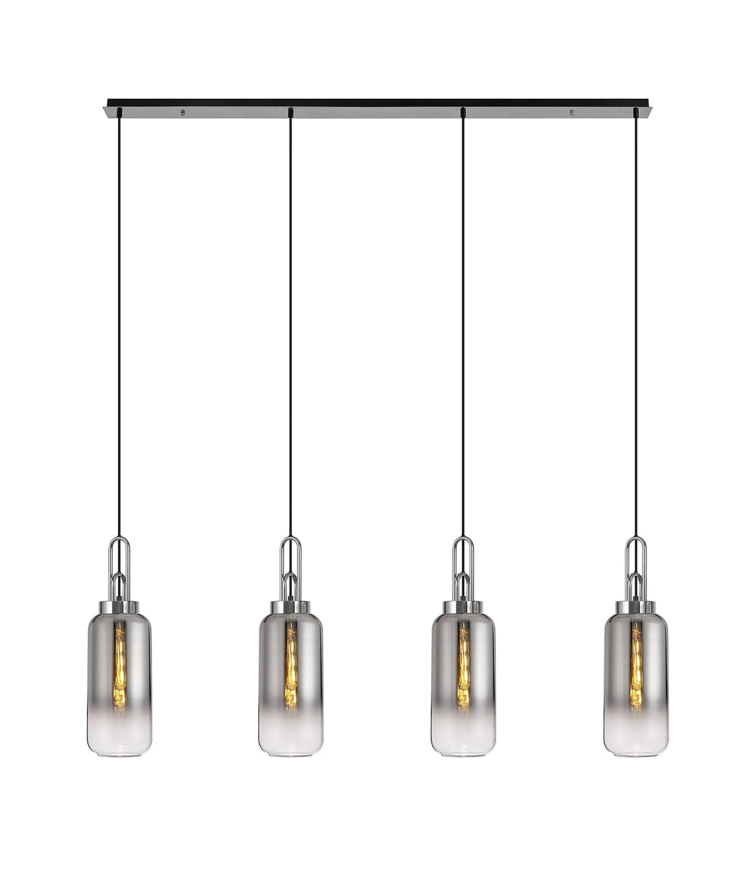 Allardyce Linear 4 Light Pendant E27 With 16cm Cylinder Glass, Smoked/Clear Polished Nickel/Matt Black