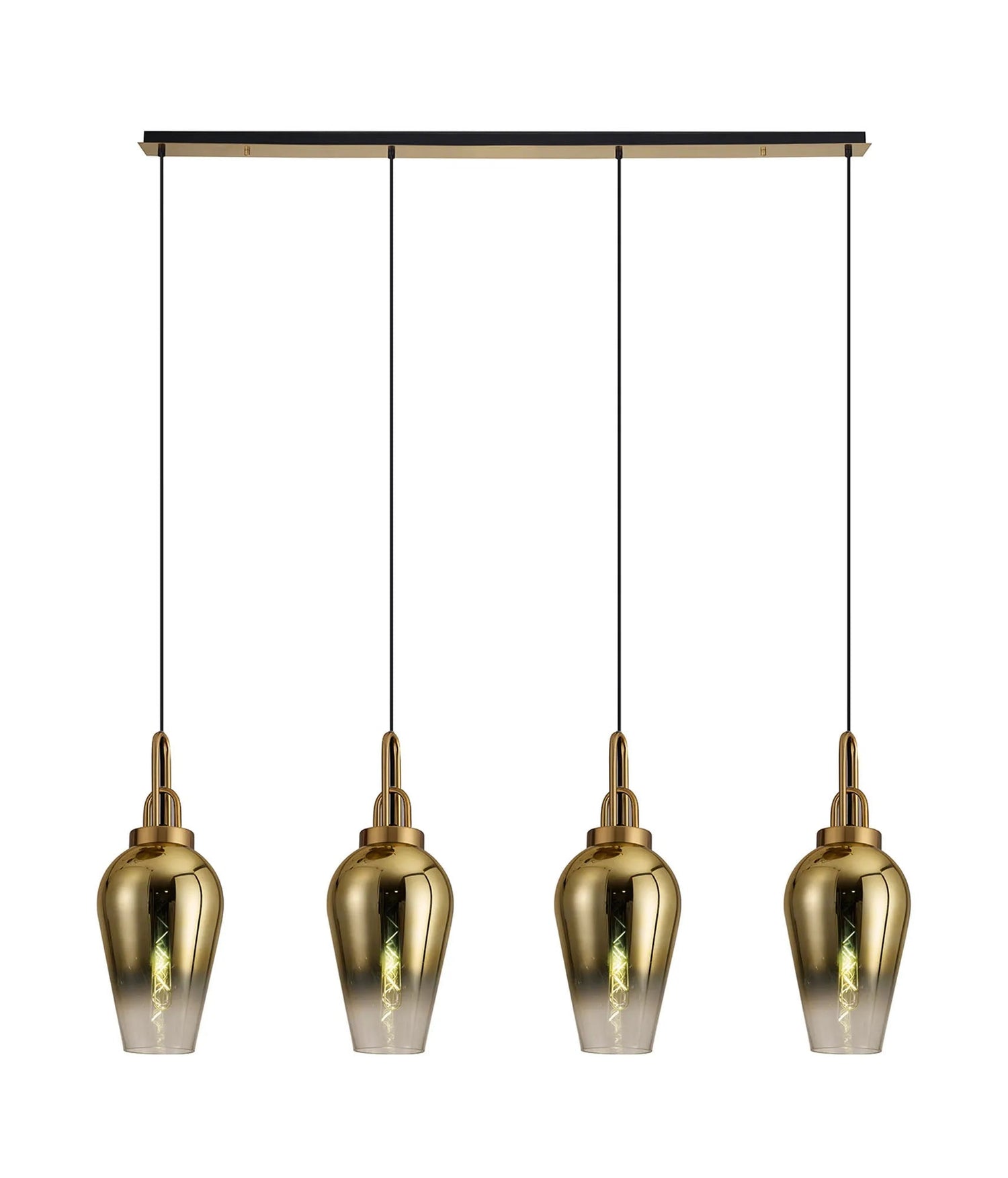 Allardyce Linear 4 Light Pendant E27 With 23cm Pear Glass, Brass Gold/Clear Brass Gold/Matt Black