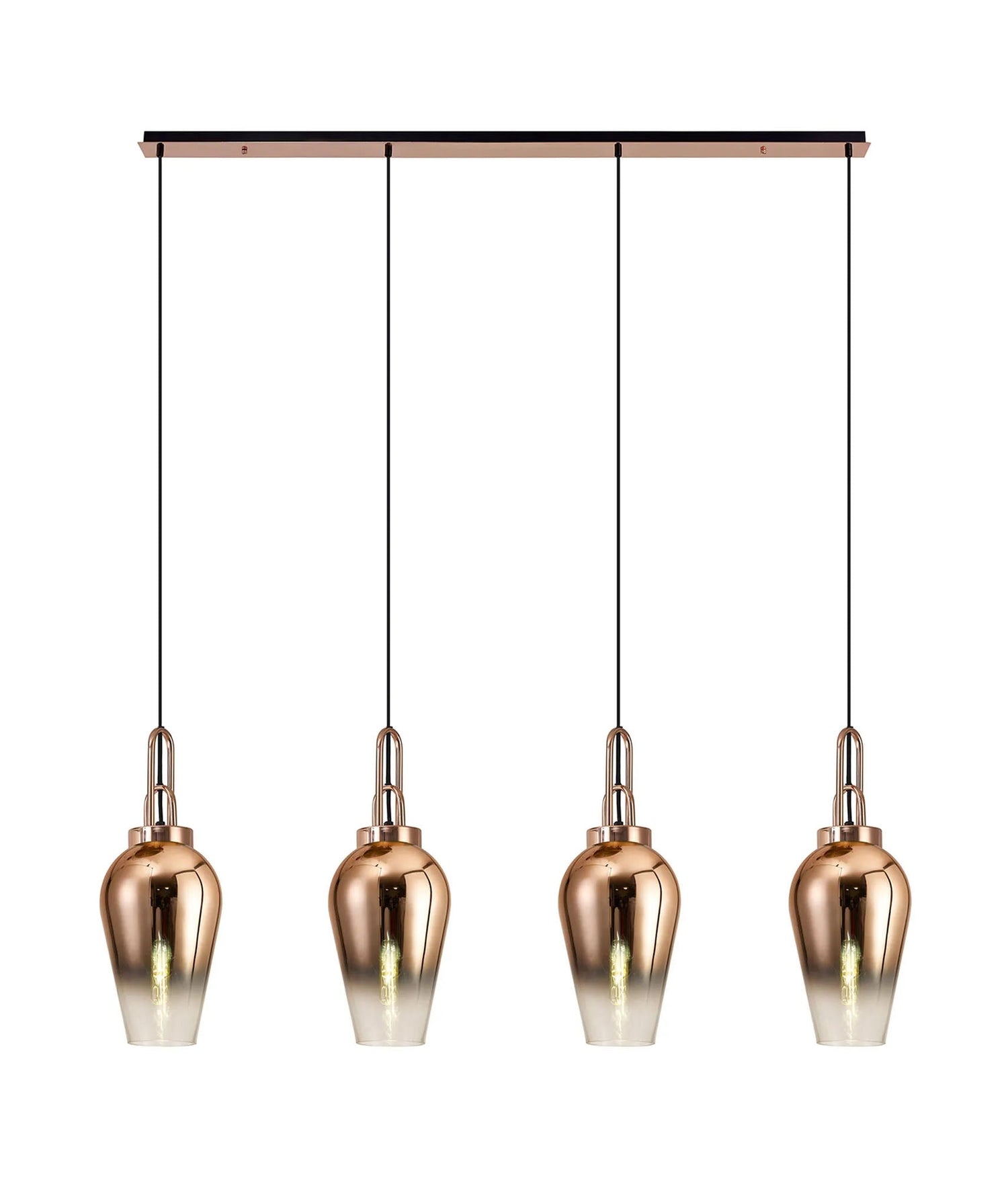 Allardyce Linear 4 Light Pendant E27 With 23cm Pear Glass, Copper/Clear Copper/Matt Black