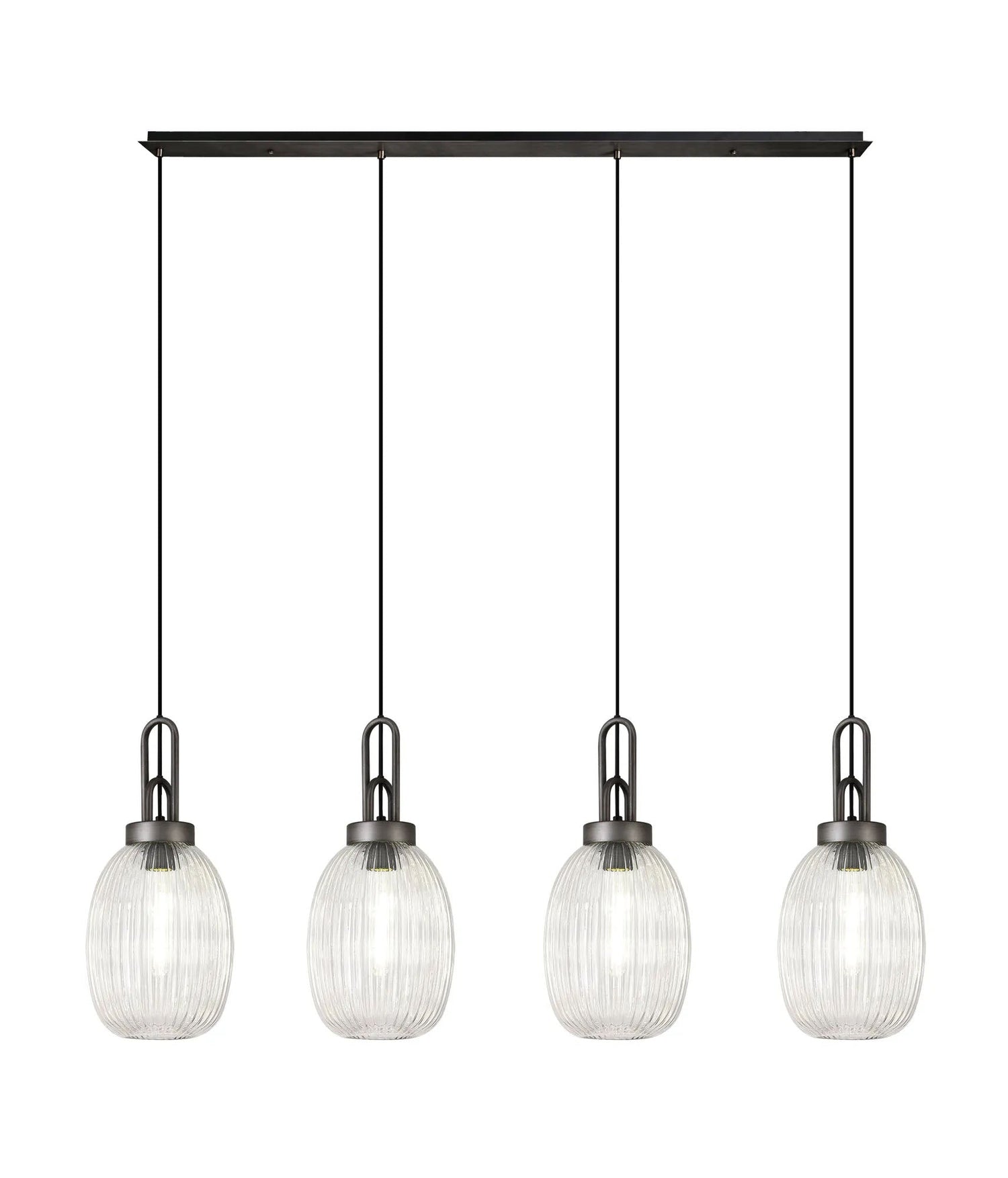 Allardyce Linear 4 Light Pendant With 20cm Almond Ribbed Glass, Aged Pewter/Matt Black Clear