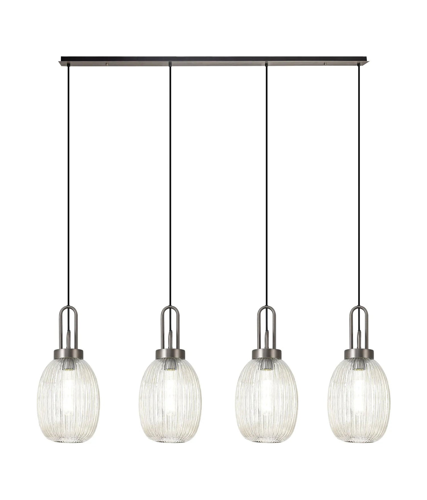 Allardyce Linear 4 Light Pendant With 20cm Almond Ribbed Glass, Antique Silver/Matt Black Champagne