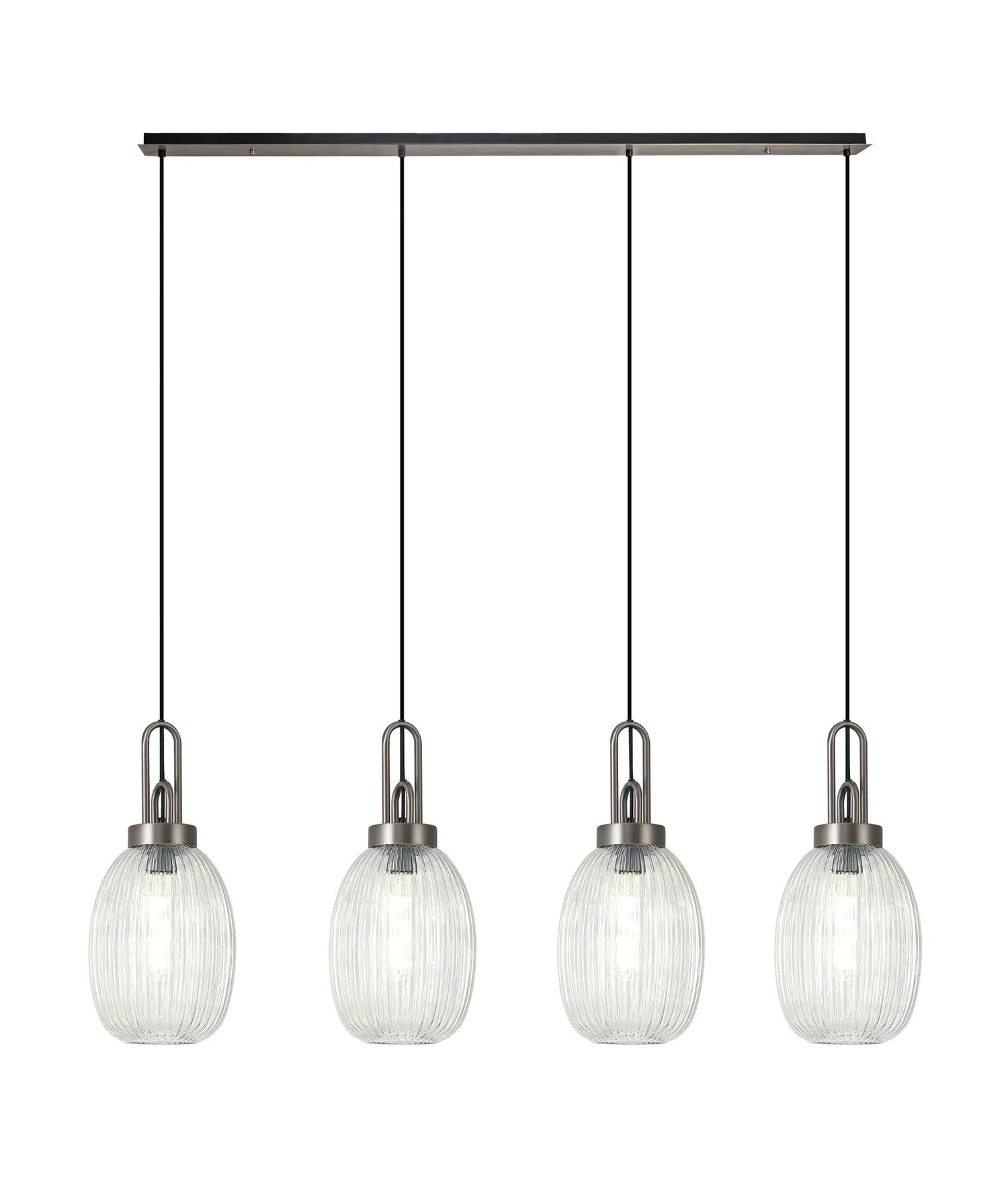 Allardyce Linear 4 Light Pendant With 20cm Almond Ribbed Glass, Antique Silver/Matt Black Clear