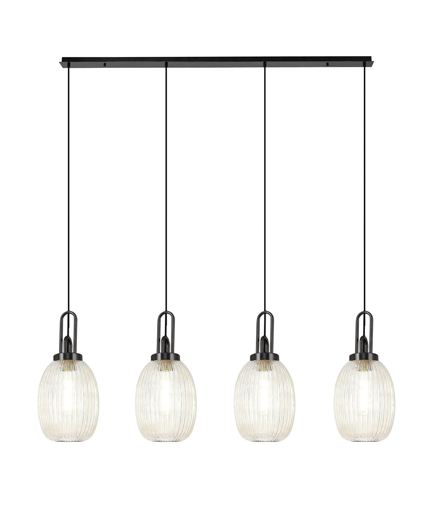 Allardyce Linear 4 Light Pendant With 20cm Almond Ribbed Glass, Black Chrome/Matt Black Champagne