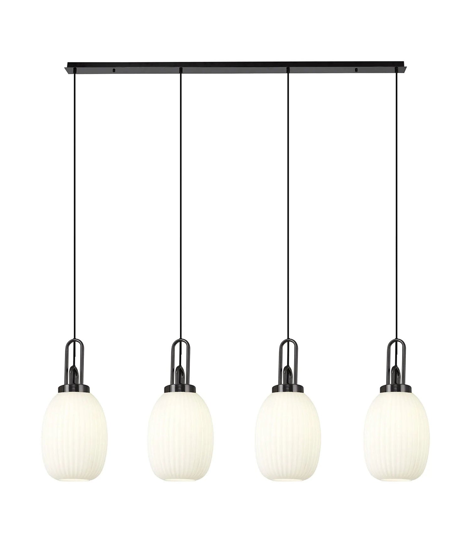 Allardyce Linear 4 Light Pendant With 20cm Almond Ribbed Glass, Black Chrome/Matt Black Opal