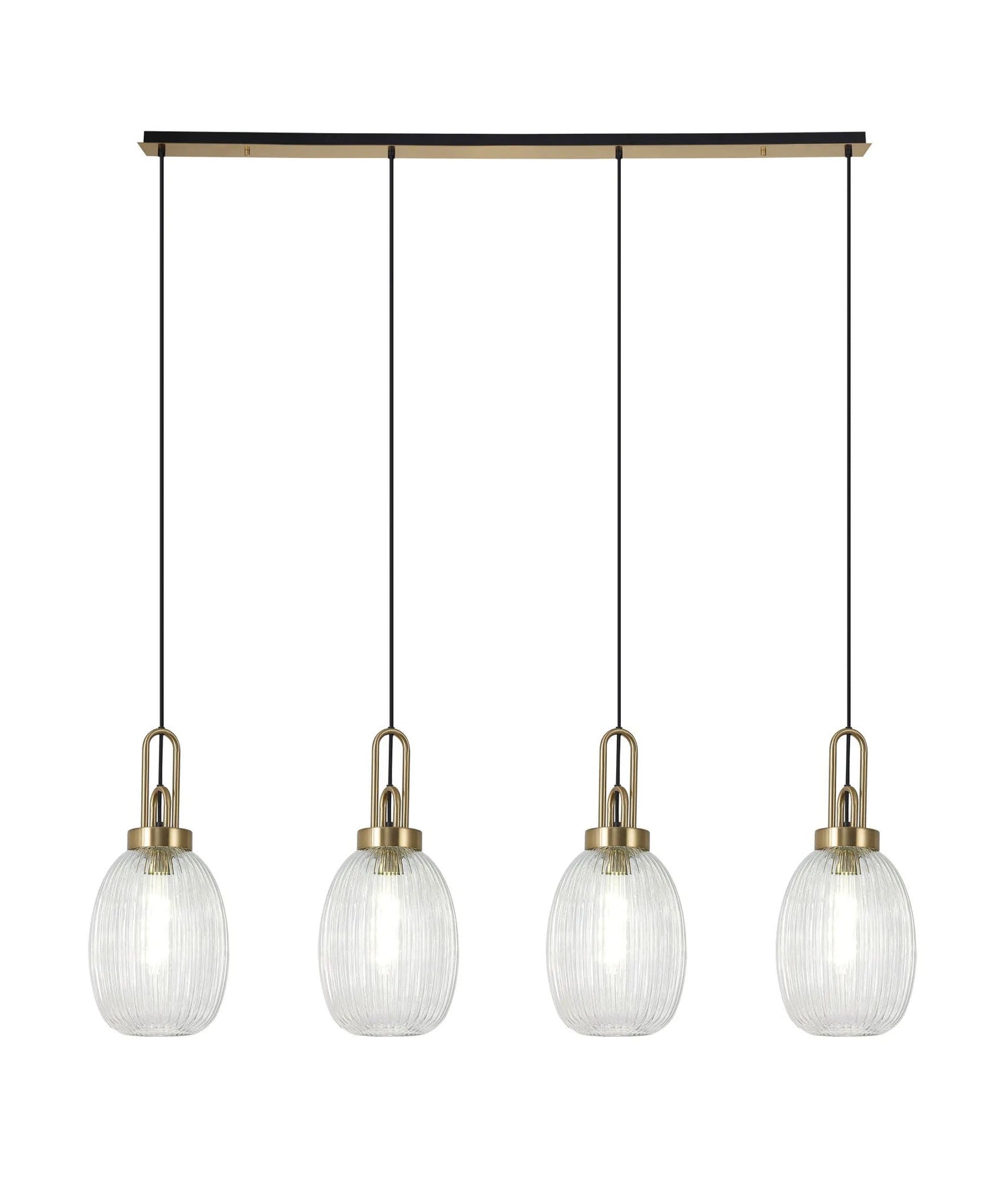 Allardyce Linear 4 Light Pendant With 20cm Almond Ribbed Glass, Brass Gold/Matt Black Clear