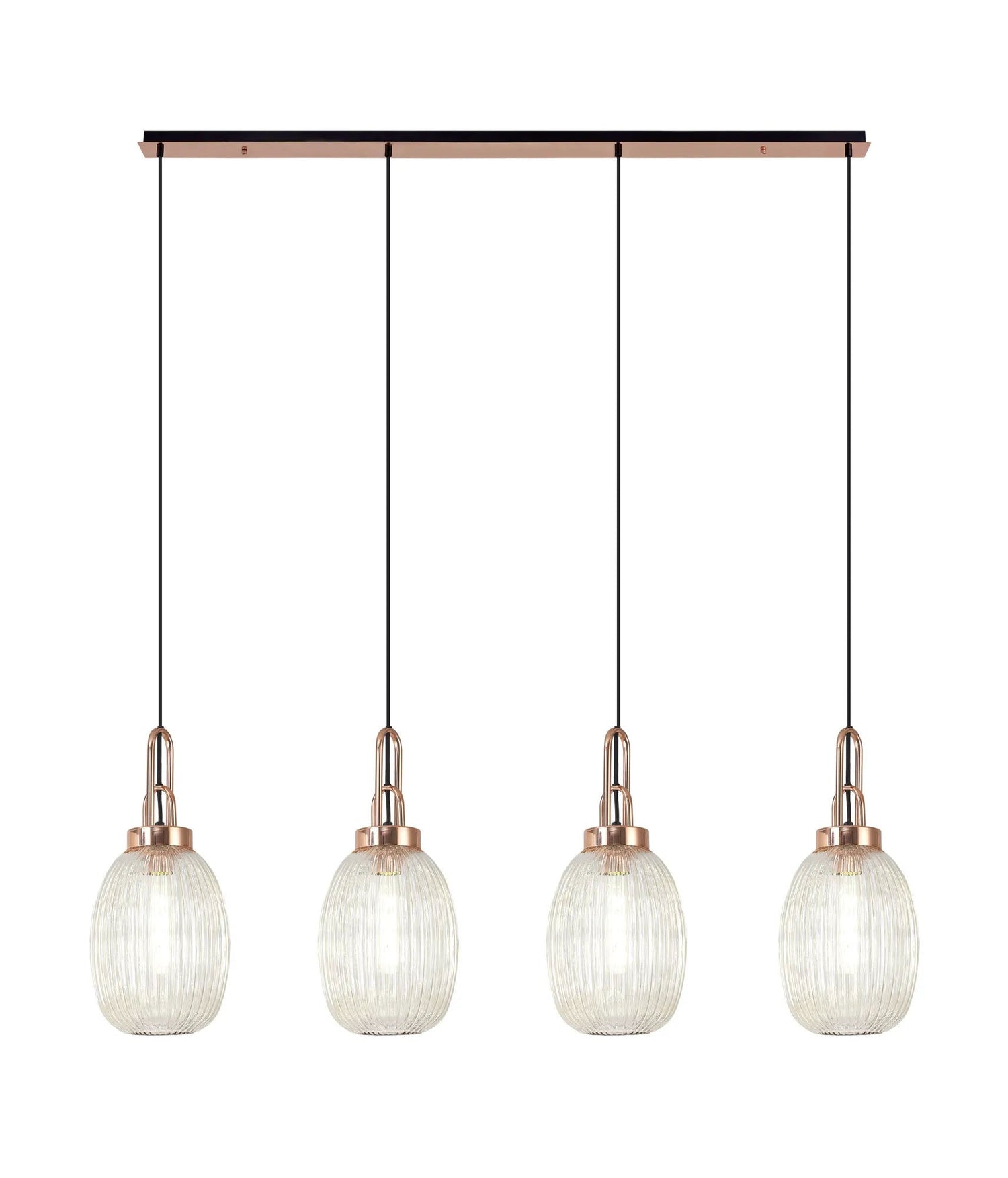 Allardyce Linear 4 Light Pendant With 20cm Almond Ribbed Glass, Copper/Matt Black Champagne