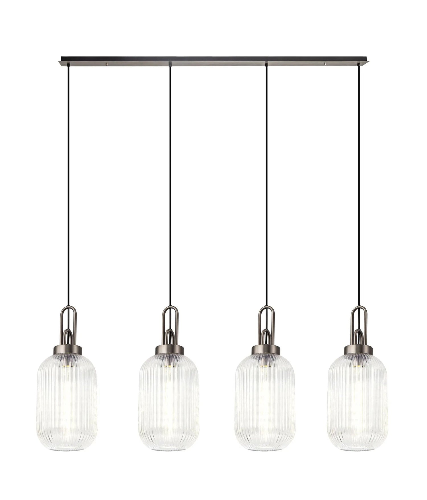 Allardyce Linear 4 Light Pendant With 20cm Tubular Ribbed Glass, Antique Silver/Matt Black Clear