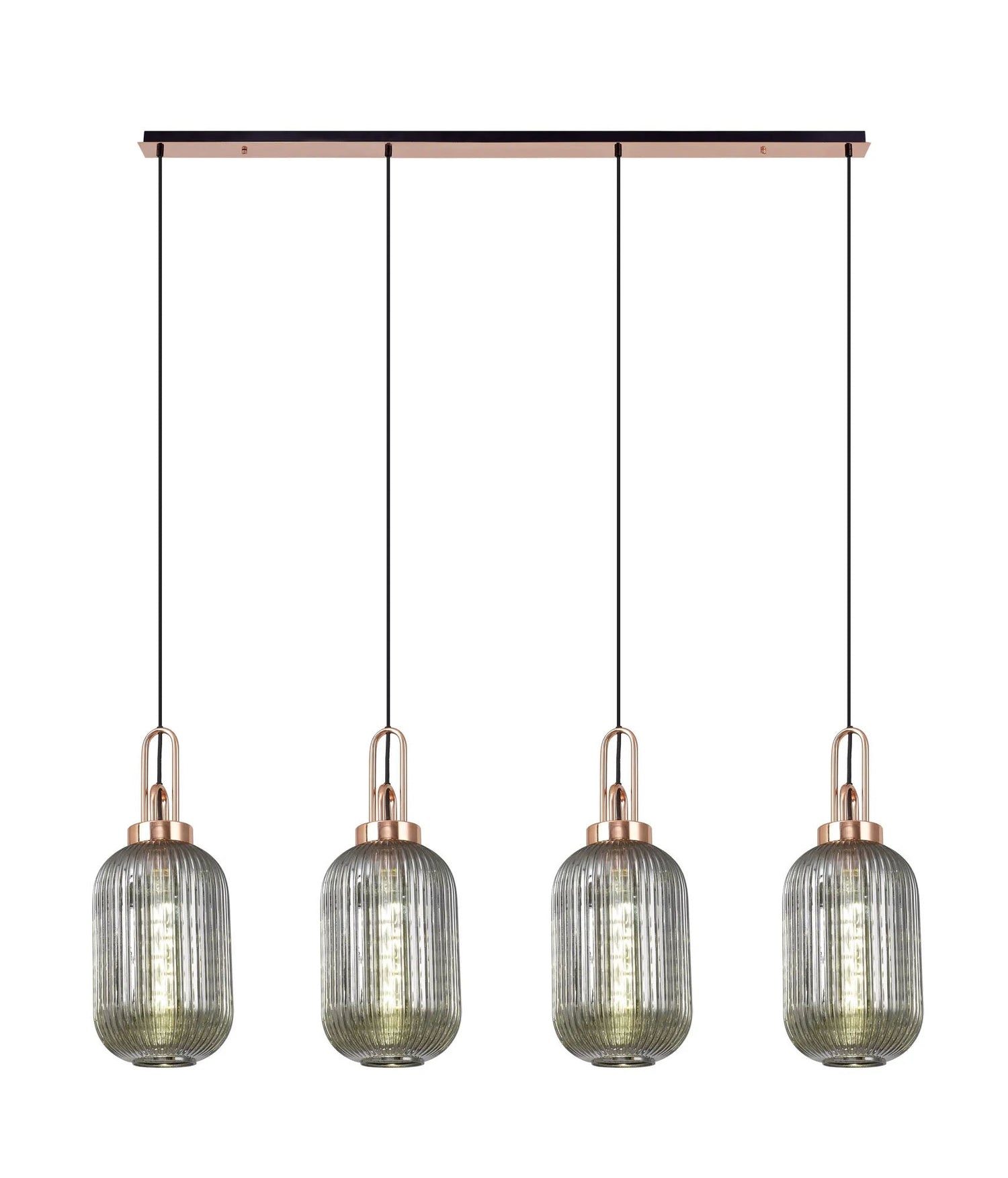 Allardyce Linear 4 Light Pendant With 20cm Tubular Ribbed Glass, Copper/Matt Black Smoked