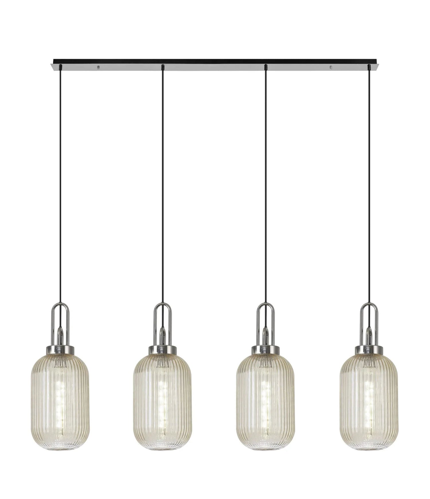 Allardyce Linear 4 Light Pendant With 20cm Tubular Ribbed Glass, Polished Nickel/Matt Black Champagne