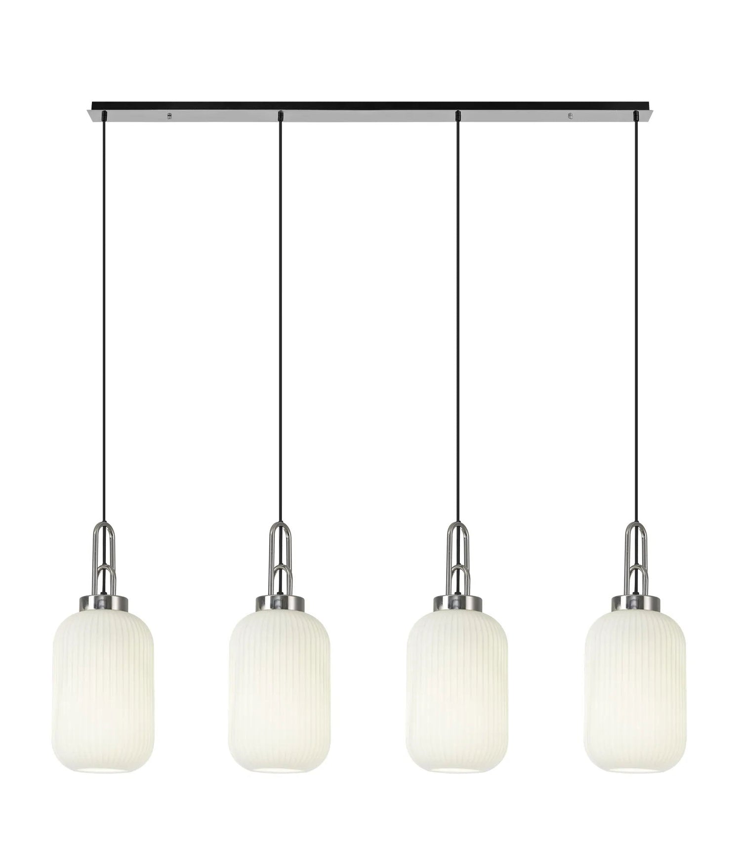 Allardyce Linear 4 Light Pendant With 20cm Tubular Ribbed Glass, Polished Nickel/Matt Black Opal