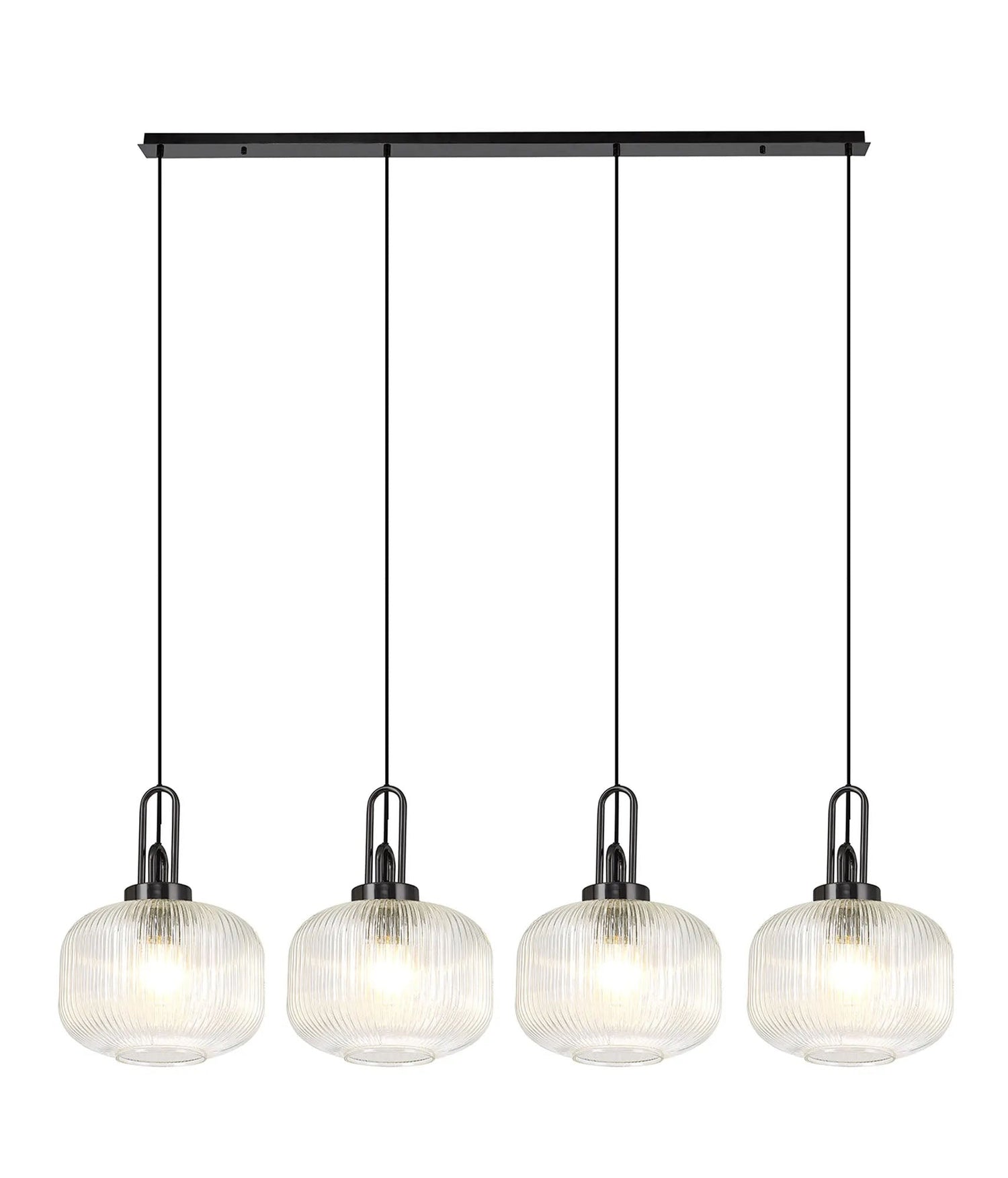 Allardyce Linear Pendant, 4 x E27, Black Chrome/Matt Black With 30cm Pumpkin Shaped Ribbed Clear Glass