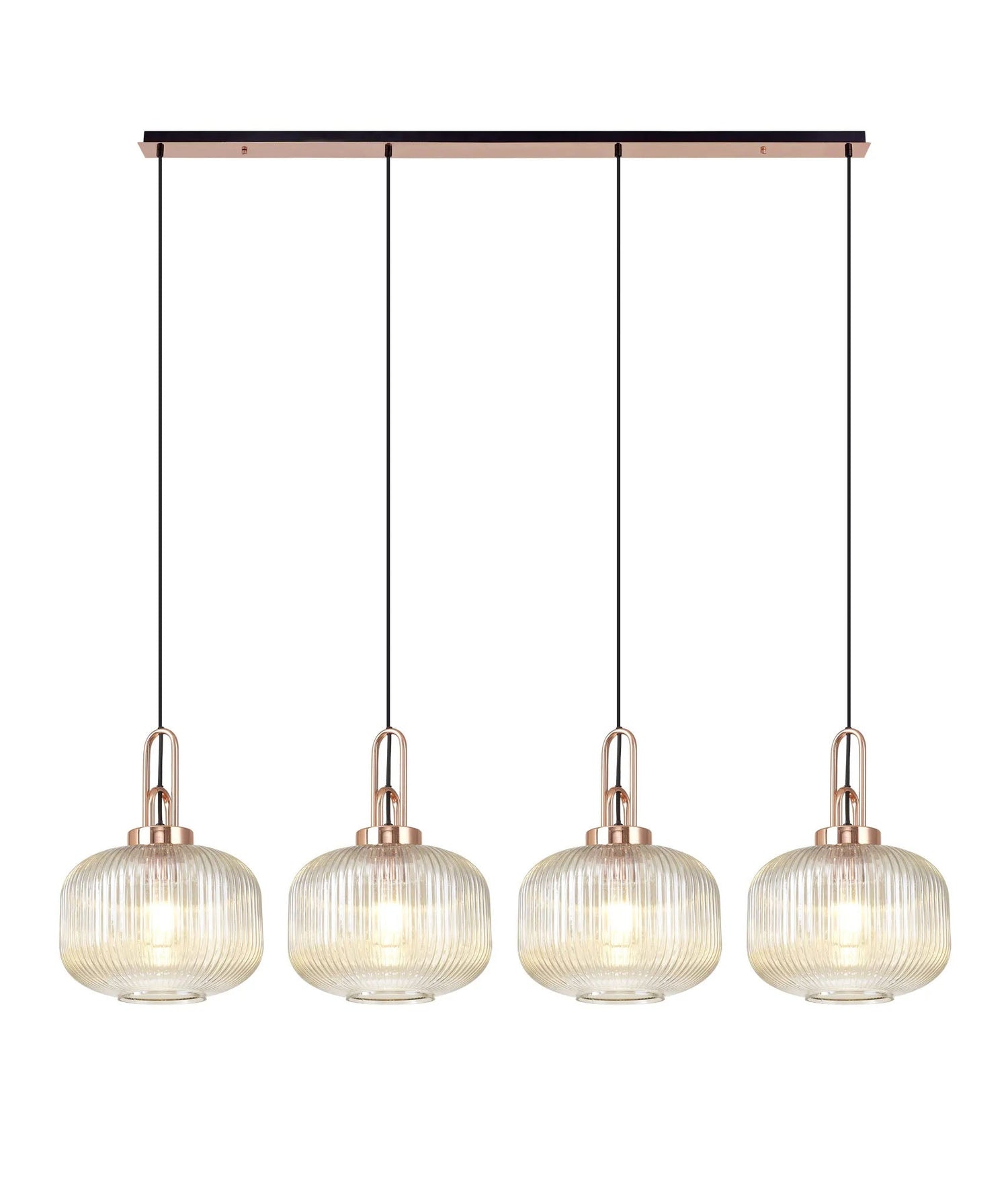 Allardyce Linear Pendant, 4 x E27, Copper/Matt Black With 30cm Pumpkin Shaped Ribbed Champagne Glass