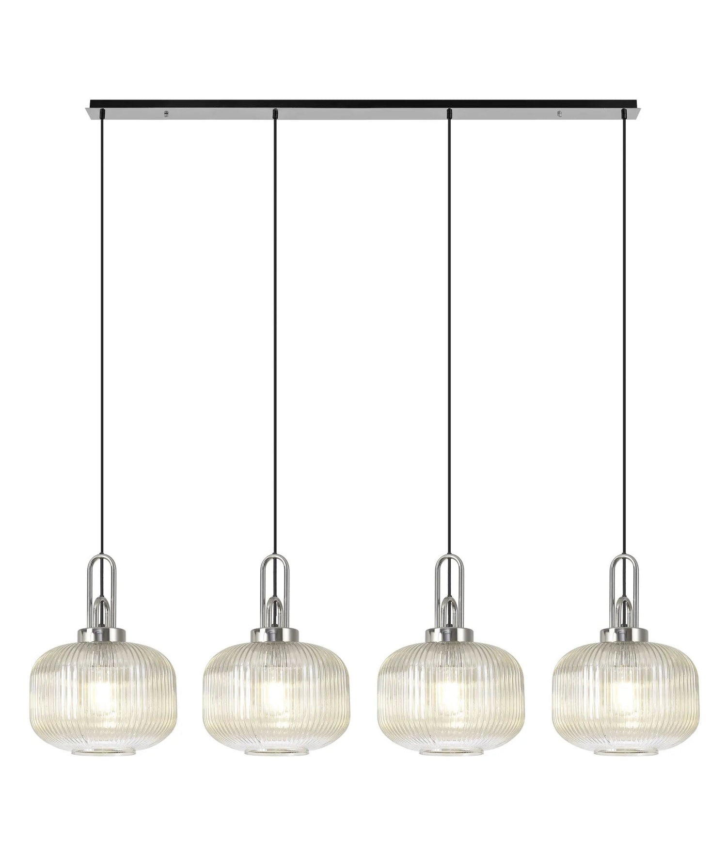 Allardyce Linear Pendant, 4 x E27, Polished Nickel/Matt Black With 30cm Pumpkin Shaped Ribbed Champagne Glass