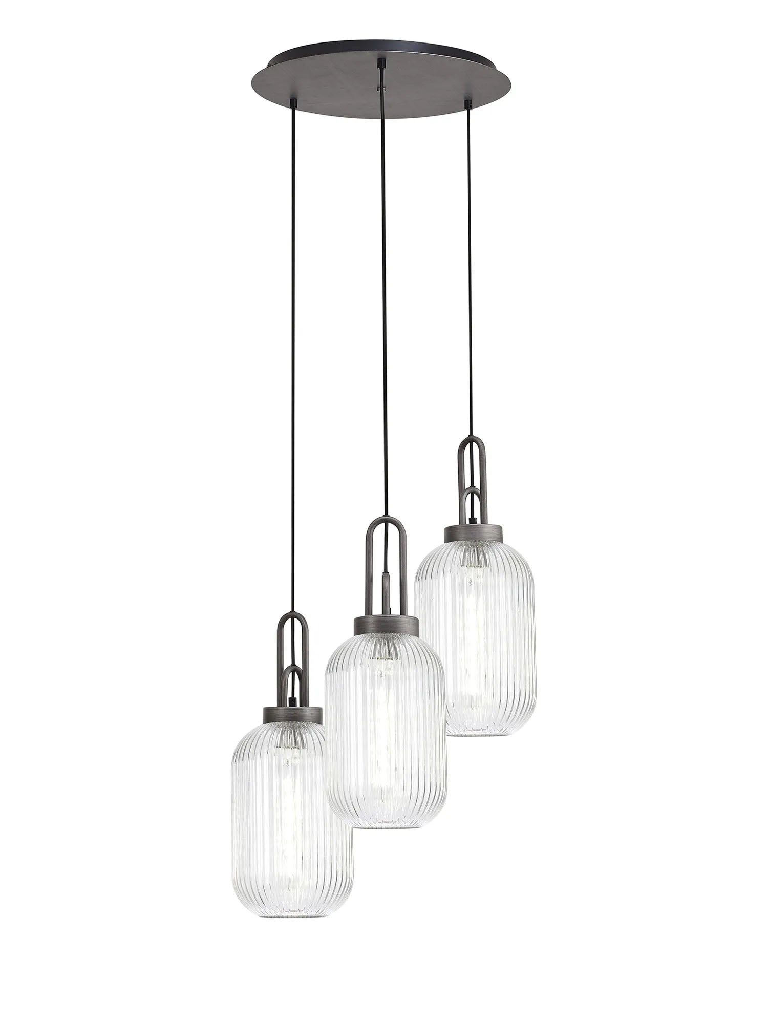 Allardyce Round 3 Light Pendant With 20cm Tubular Ribbed Glass, Aged Pewter/Matt Black Clear