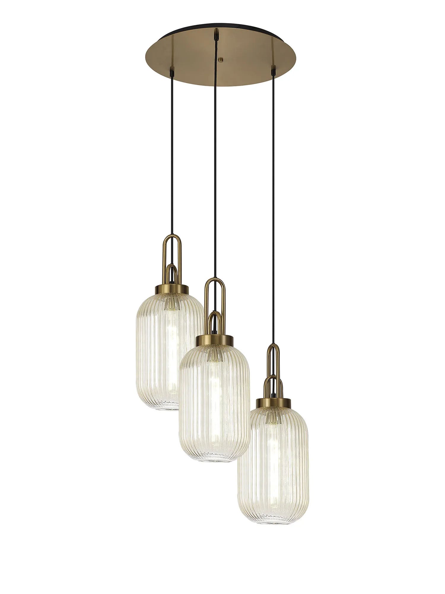 Allardyce Round 3 Light Pendant With 20cm Tubular Ribbed Glass, Brass Gold/Matt Black Champagne