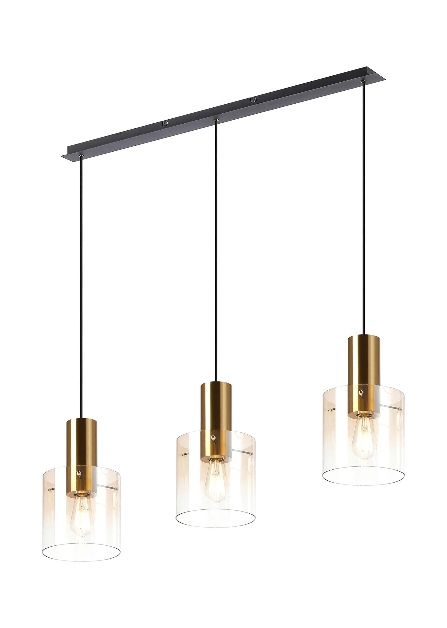 Chisholm Linear Pendant, 3 Light Adjustable E27, Brass/Sand Black/Amber Fade Glass