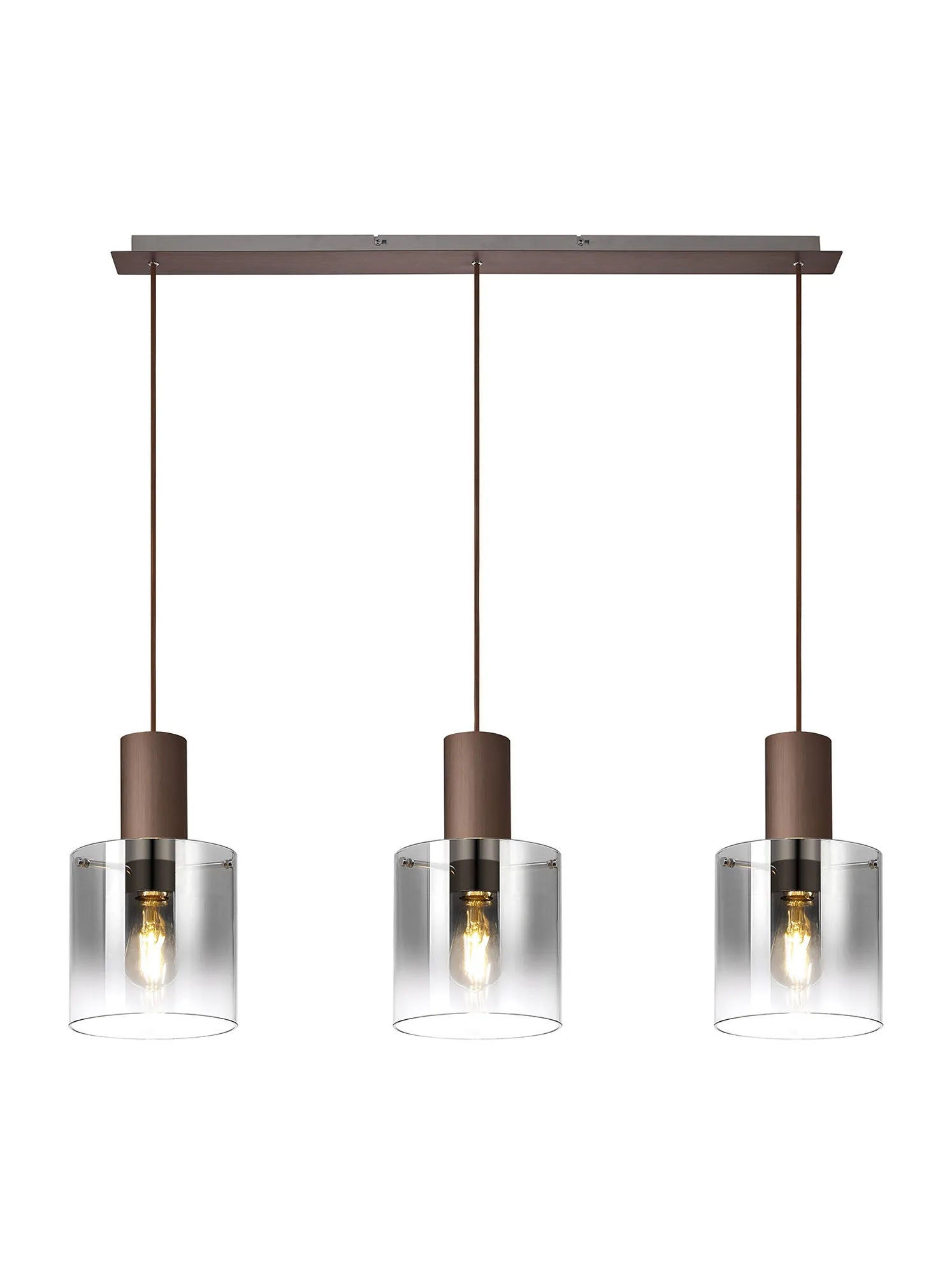 Chisholm Linear Pendant, 3 Light Adjustable E27, Mocha/Smoke Fade Glass