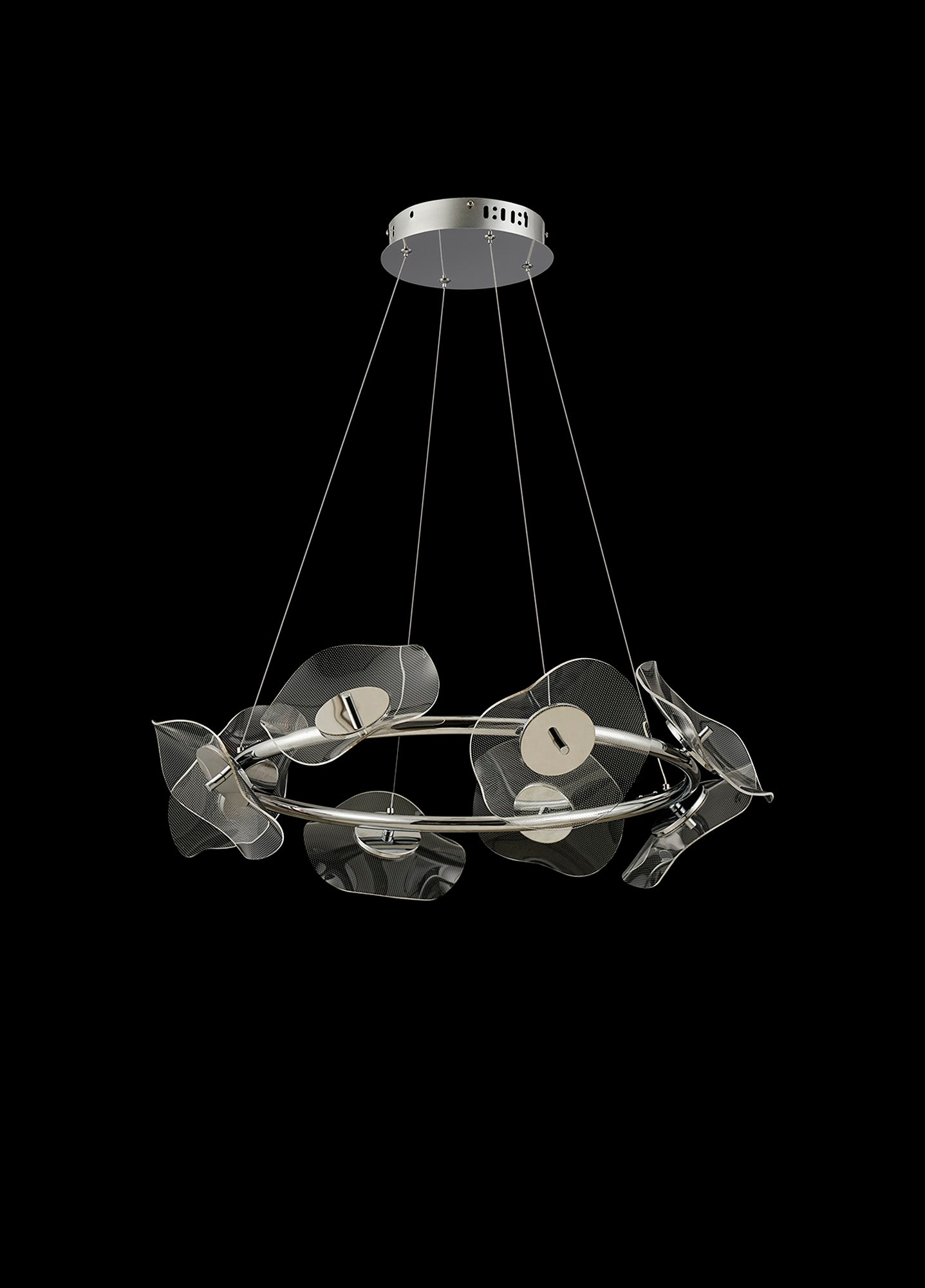 Corner Ring Pendant, 8 x 6W LED, 4000K ,3700lm, Polished Chrome, 3yrs Warranty