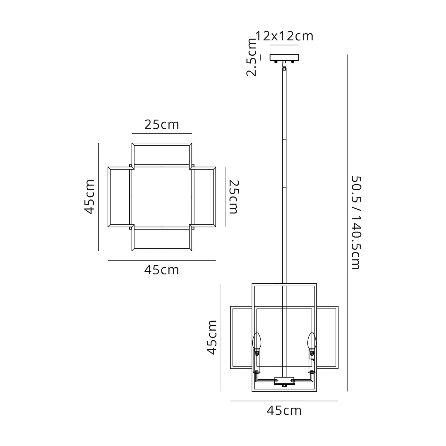 Available in two colour finishes Coton is an attractive collection of pendants with complementing wall light. The classic, minimalistic chandelier centre is framed with an original outer structure. The unique shape is formed from variations of rectangular sections, building an open housing for the E14 lamp holders. The substantial size of these shapes creates impact in design without detracting from the central light sources and the level of illumination they are able to emit, creating a wonderful ambience. The smaller pendant version available is a four light fixture whereas the larger of the two sees a two tiered 8 light.