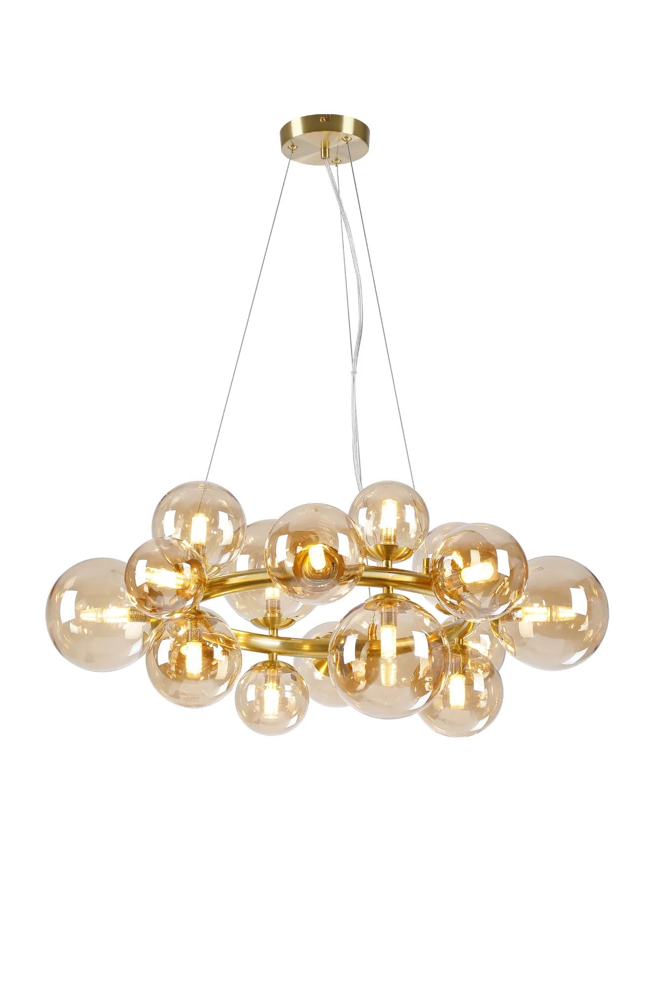 Ferguson Circular Pendant, 16 x G9, Satin Gold, Amber Plated Glass