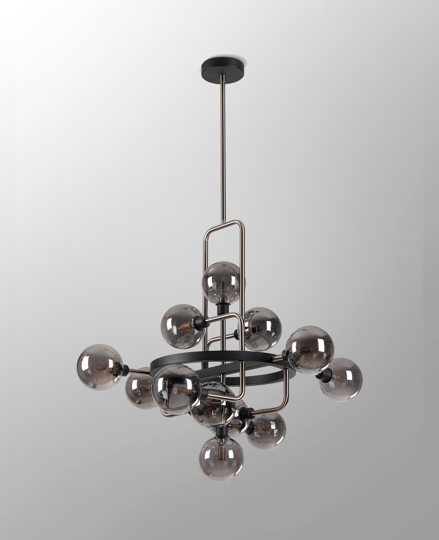 Gayle Fixed Pendant, 12 Light G9, Graphite / Satin Nickel / Smoke Glass
