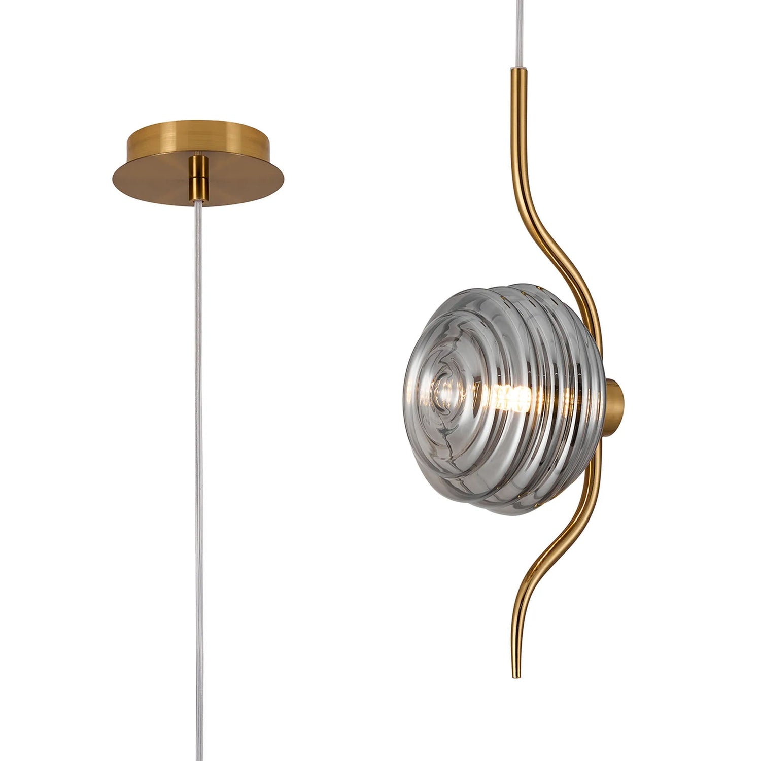 Hunt 1 Light Pendant With 160mm Glass, Brass/Smoke