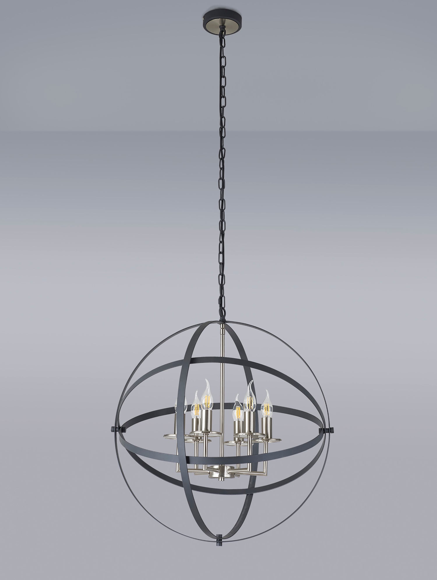 Irwin Pendant, 6 x E14, Anthracite/Satin Nickel