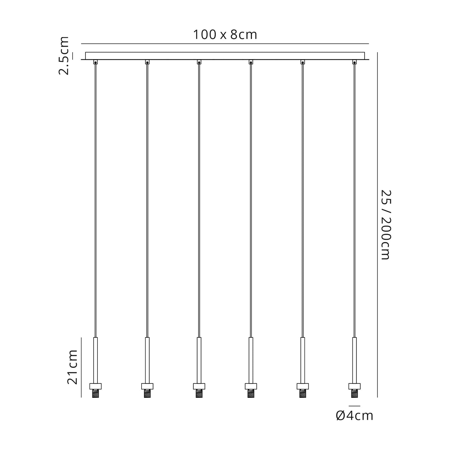 Lathen French Gold 6 Light G9 Universal 2m Linear Pendant, Suitable For A Vast Selection Of Glass Shades