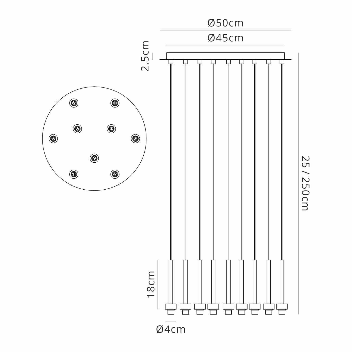 Lathen French Gold 9 Light G9 Universal 2.5m Round Multiple Pendant, Suitable For A Vast Selection Of Glass Shades