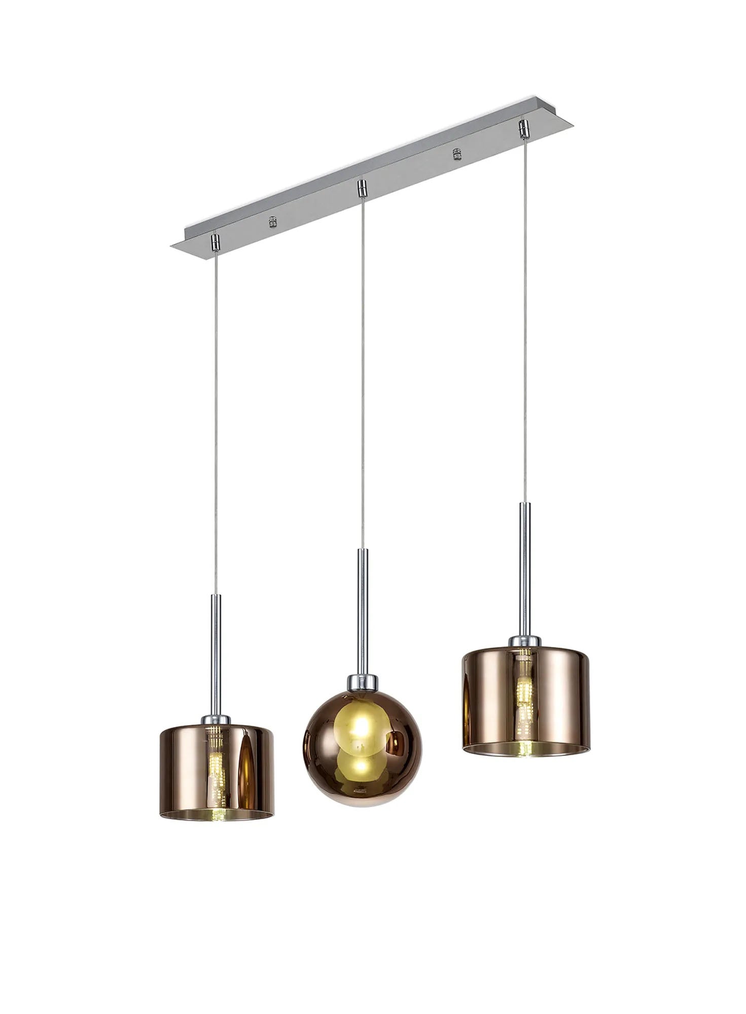 Lathen Linear Pendant 2m, 3 x G9, Polished Chrome/Copper/Frosted Type C,G Shade