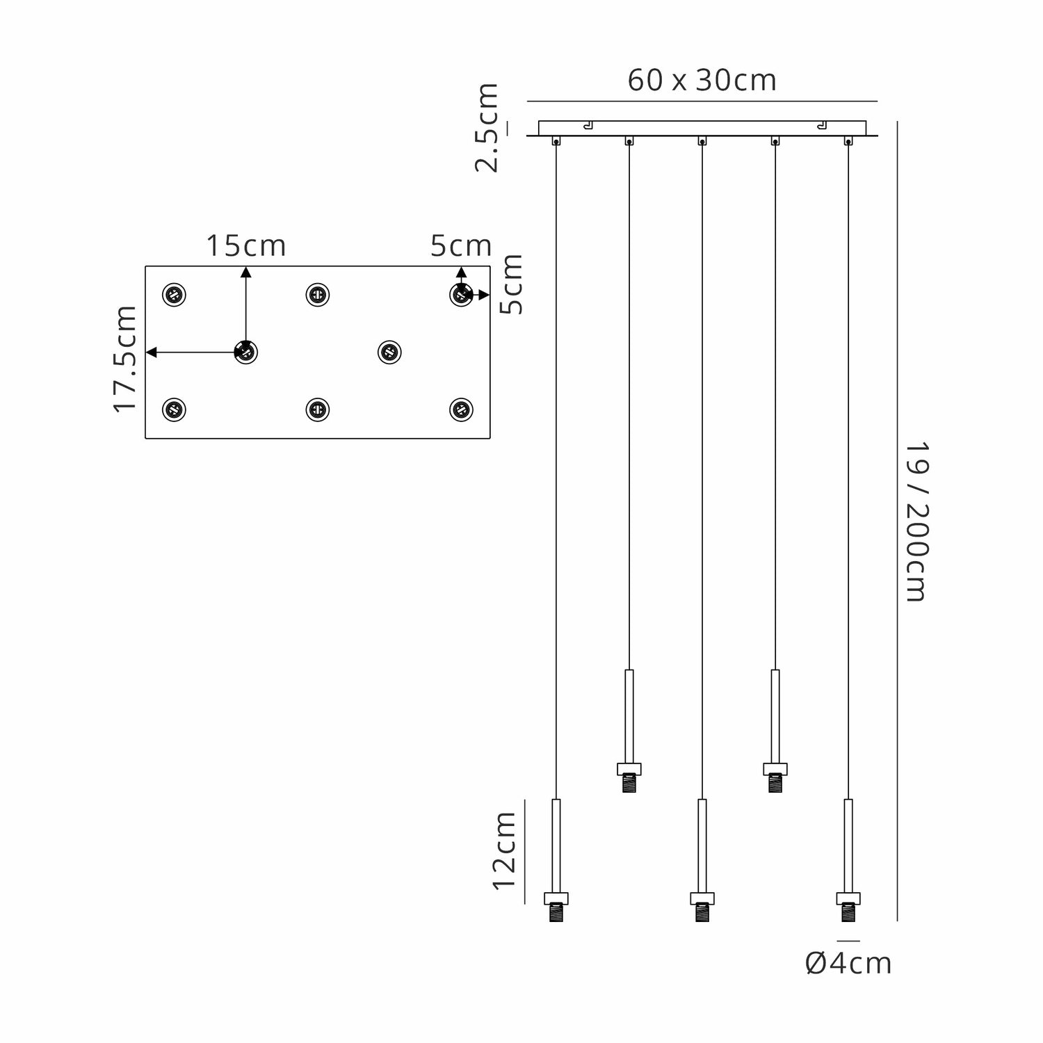 Lathen Satin Black 8 Light G9 Universal 2m Rectangle Multiple Pendant, Suitable For A Vast Selection Of Glass Shades