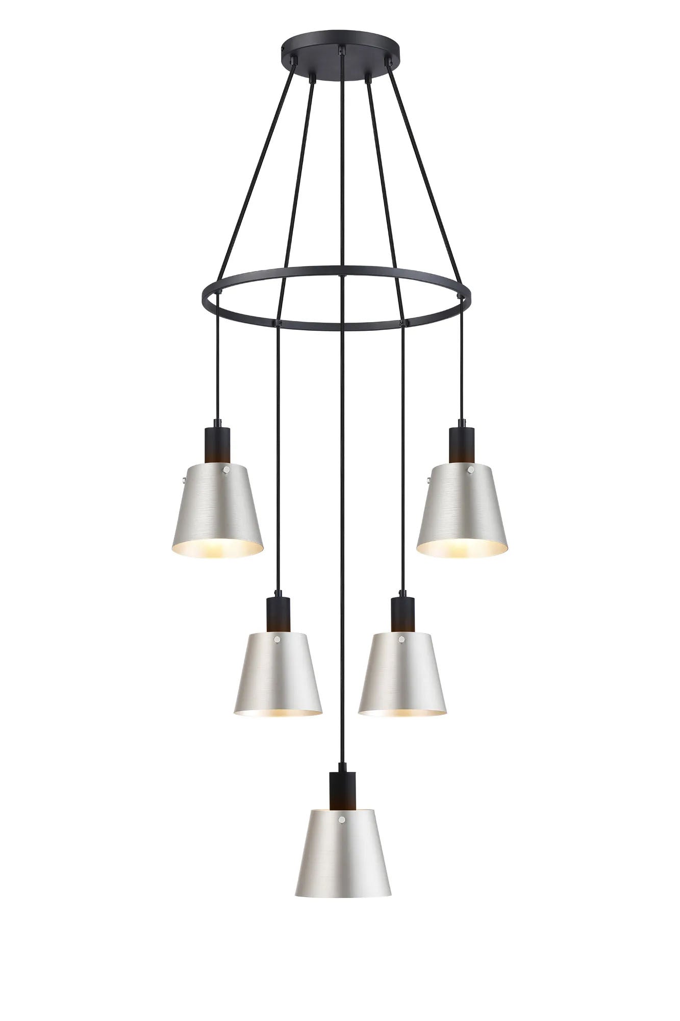 Mattson Ring Pendant, 16cm x 14cm Shade, 5 x E27, Sand Black/Light Grey/Silver Metal Shade