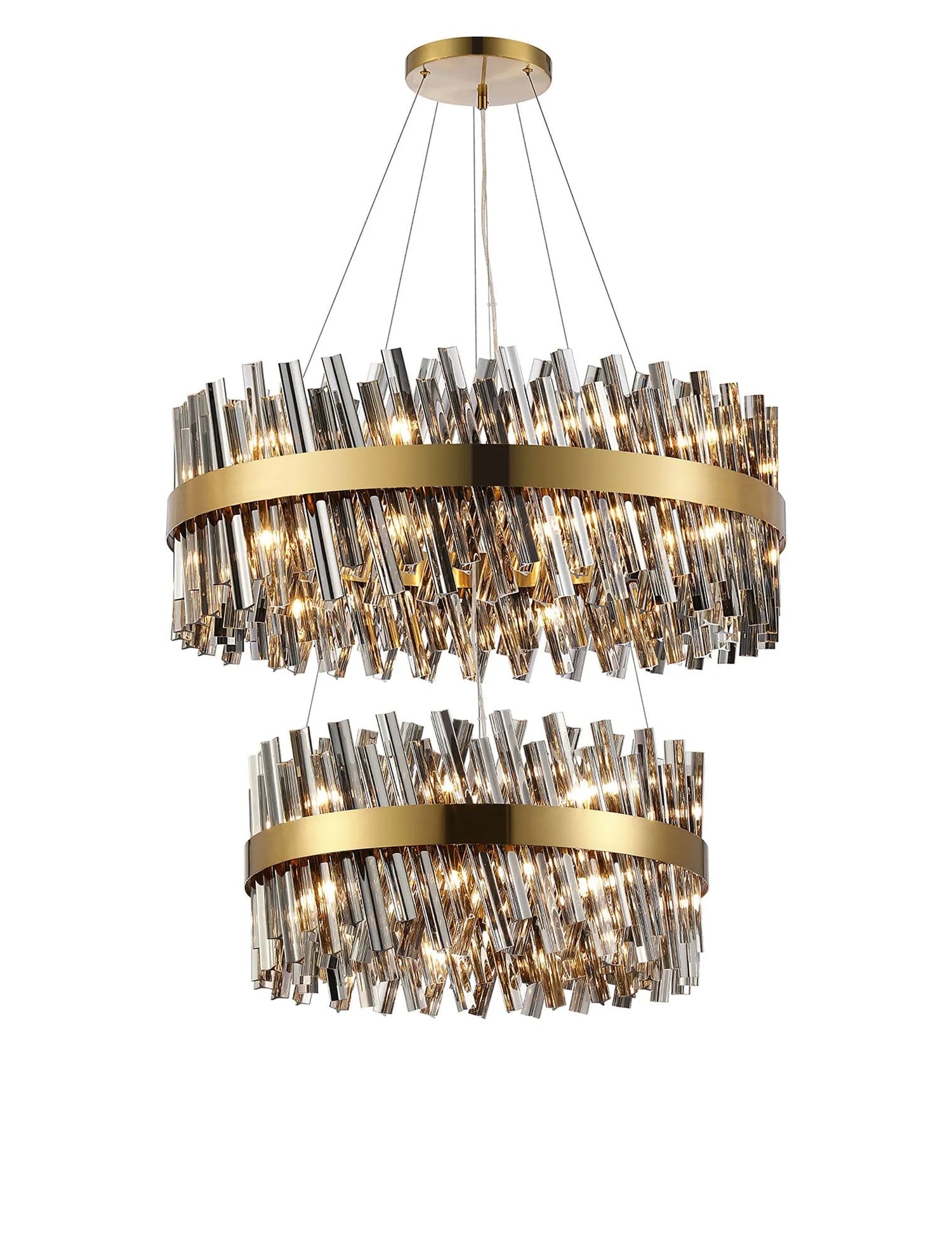 Melville 2 Tier 60cm + 80cm Pendant, 18 + 24 Light G9, Brass/Smoke